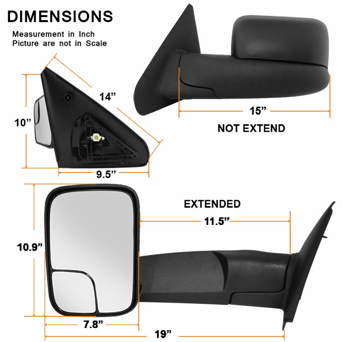 AKKON - For 02-08 Dodge Ram Extendable Towing Power Telescoping Wide Angle Side Mirrors Driver Left Side