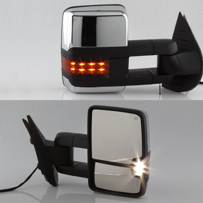 AKKON - For 07-13 Silverado Amber Extendable Towing Power Heated Function Side Mirrors Set Pair with Chrome Cover