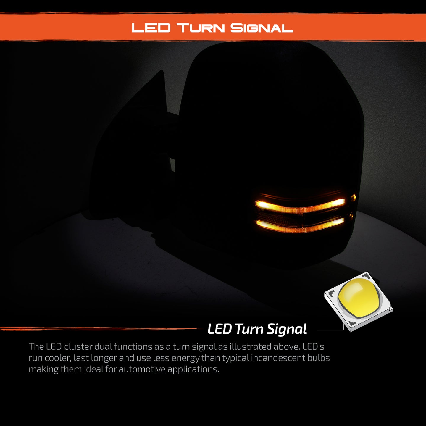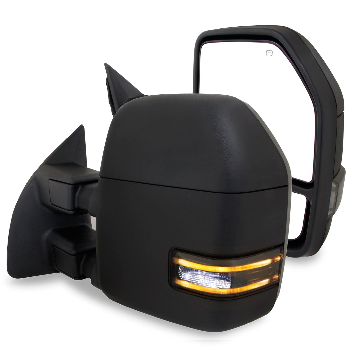AKKON - For 99-07 Ford Super Duty Pair of Power + Heated + Turn Signal Black Texture Towing Side Mirrors