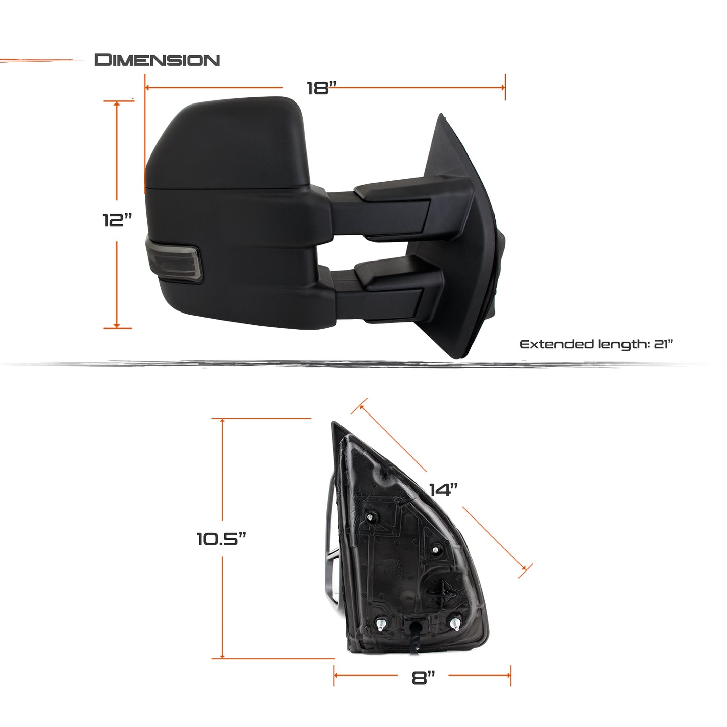 AKKON - For 2009-2018 Dodge Ram Towing Mirrors With Power Folding | Temperature Sensor |Heat | Turn Signal | Light - Smoke Black