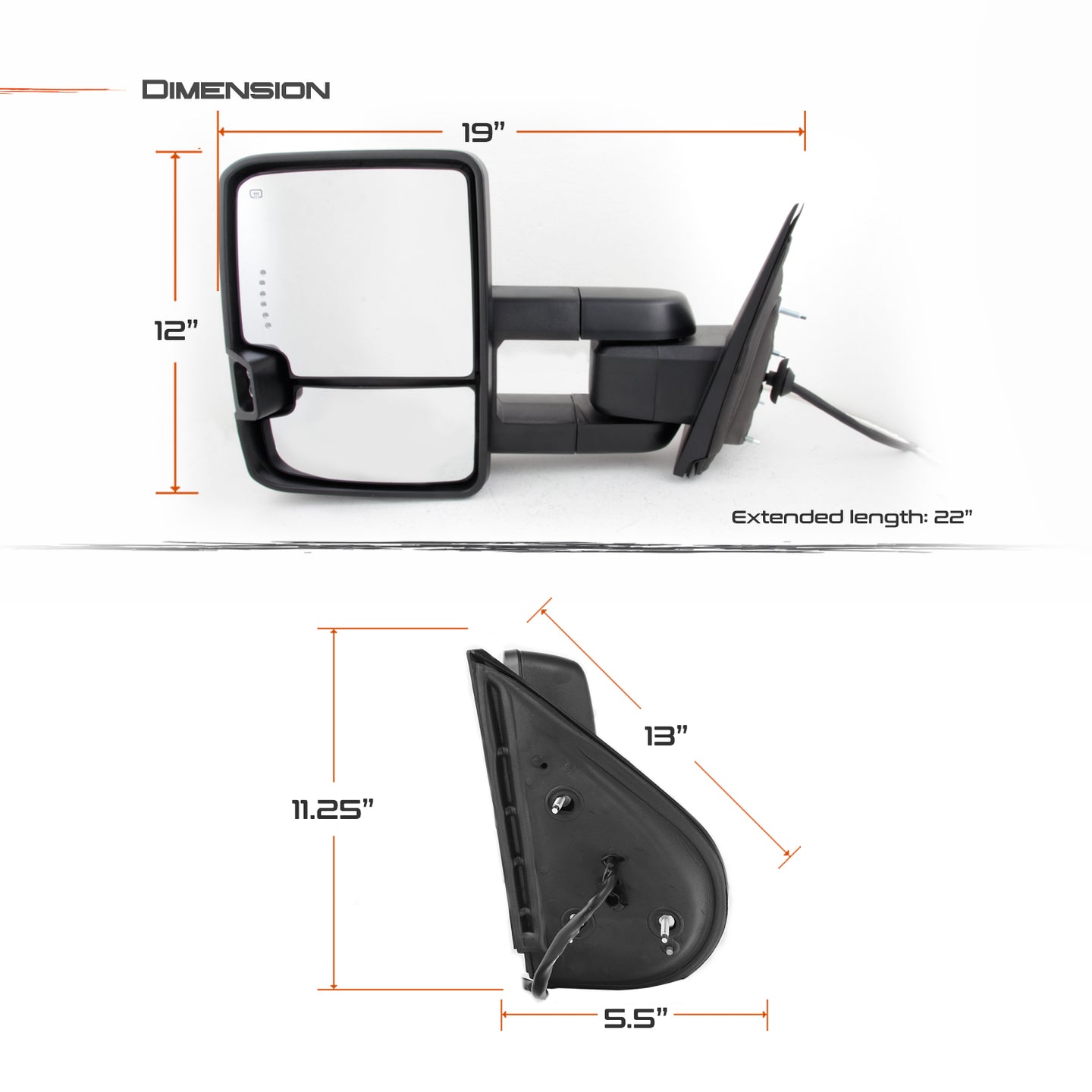 AKKON - For 07-13 Silverado Sierra Pair of Powered + Heated Glass + Sequential Turn Signal Side Black Towing Mirrors