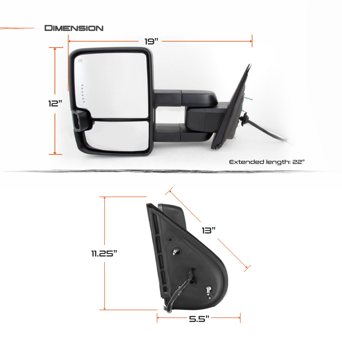 AKKON - For 2014-2018 Chevy Silverado GMC Serria - Pair Towing Mirrors With Power fold| Heated | Turn Signal | Lamp - Chrome