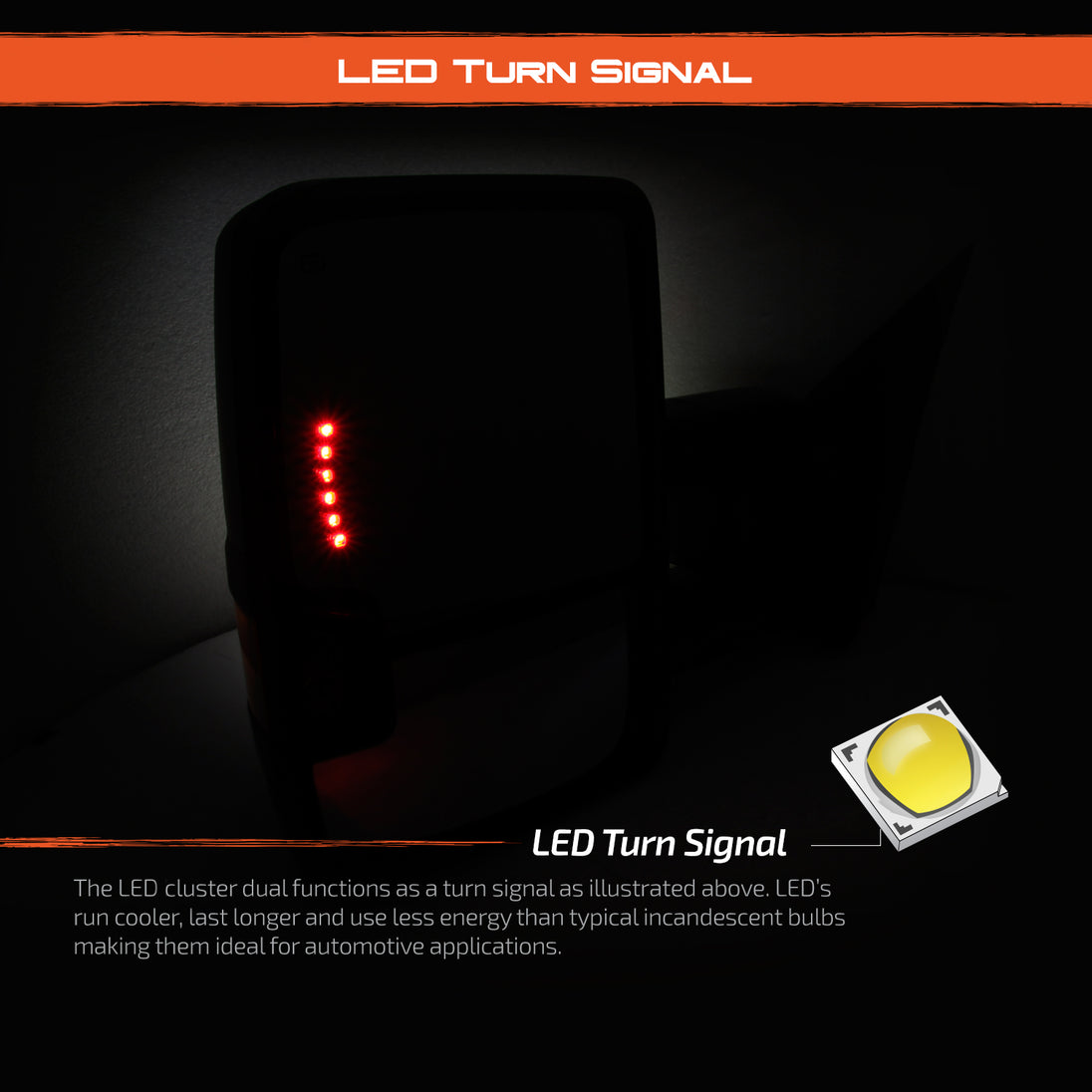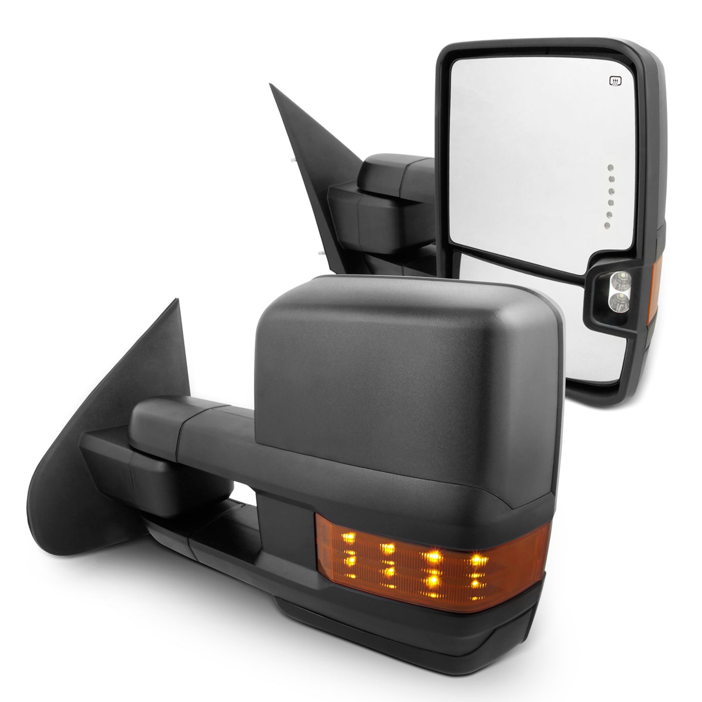 AKKON - For 99-07 Ford Super Duty Pair of Power + Heated + Turn Signal Black Texture Towing Side Mirrors
