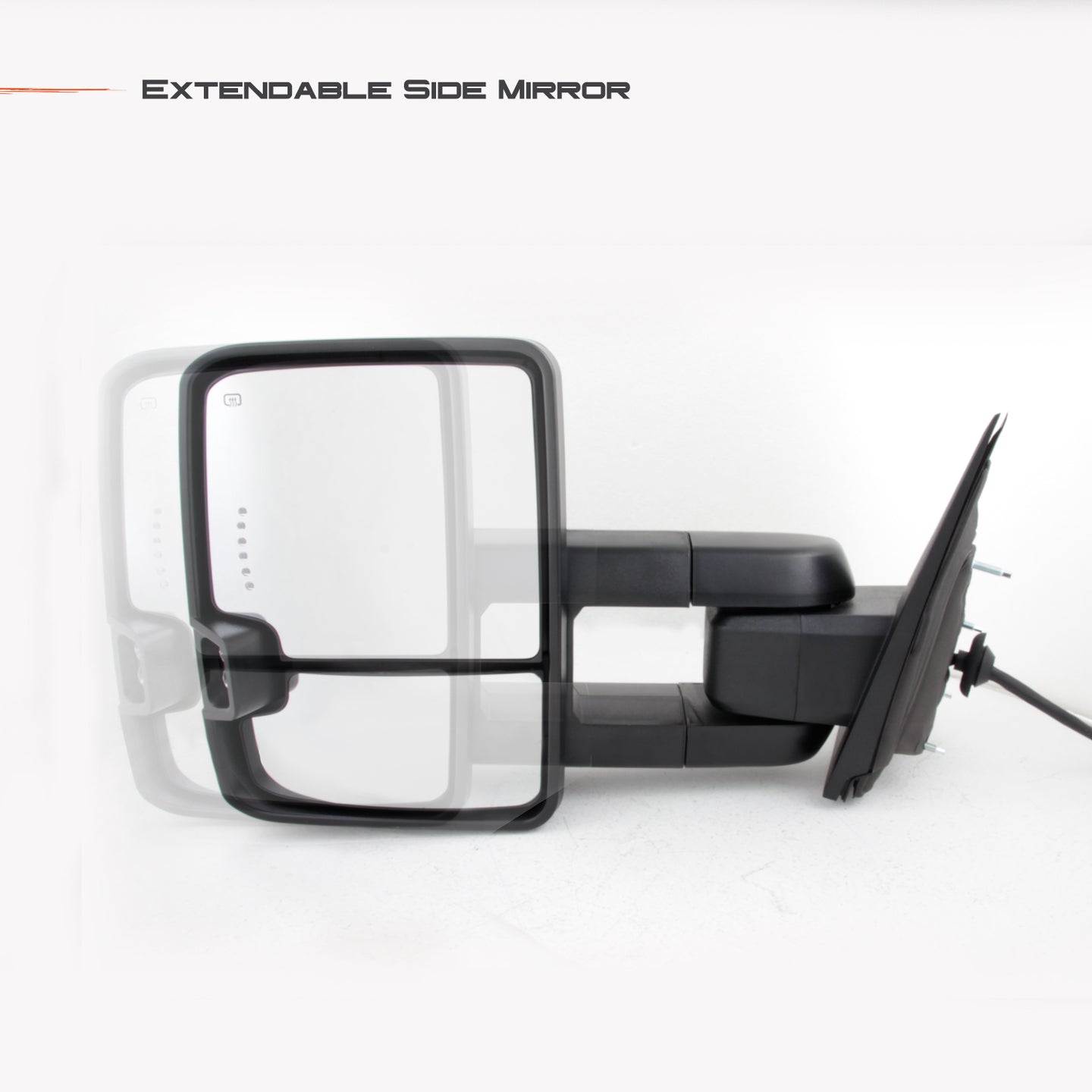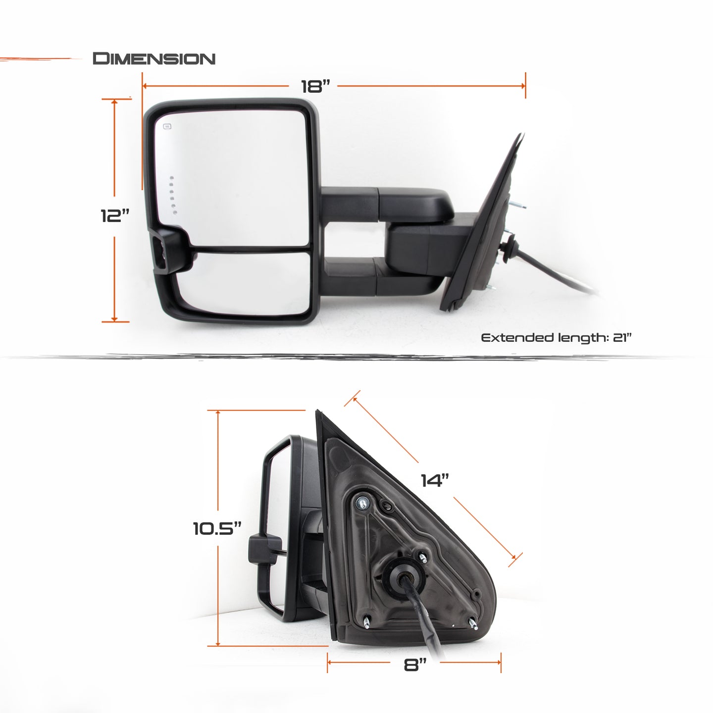 AKKON - For 14-18 Silverado Sierra Pair of Power Fold + Heated + Turn Signal Glass Side Black Texture Towing Mirrors
