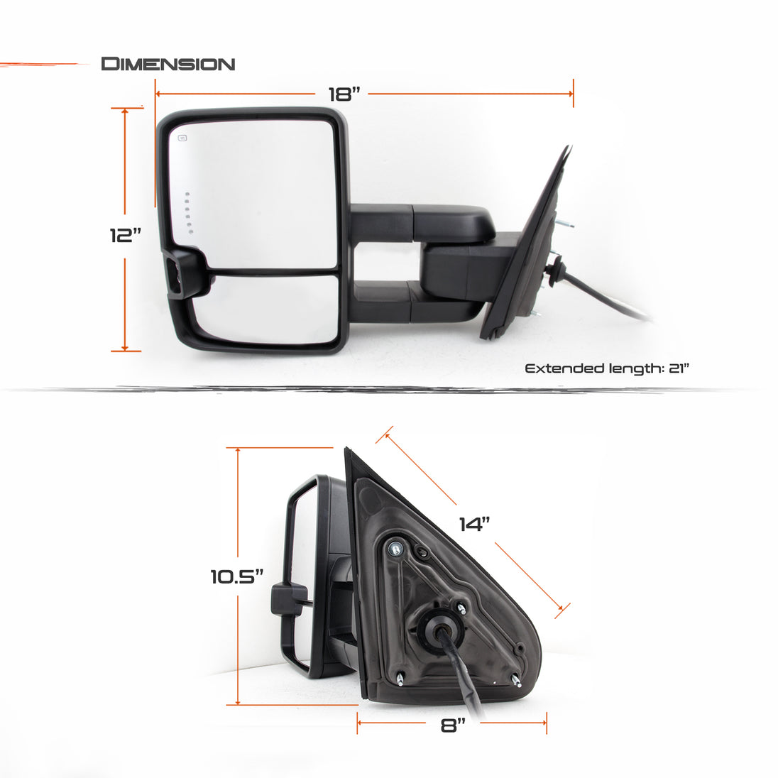 AKKON - For 2014-2018 Chevy Silverado GMC Serria - Pair Towing Mirrors With Power fold| Heated | Turn Signal | Lamp - Chrome