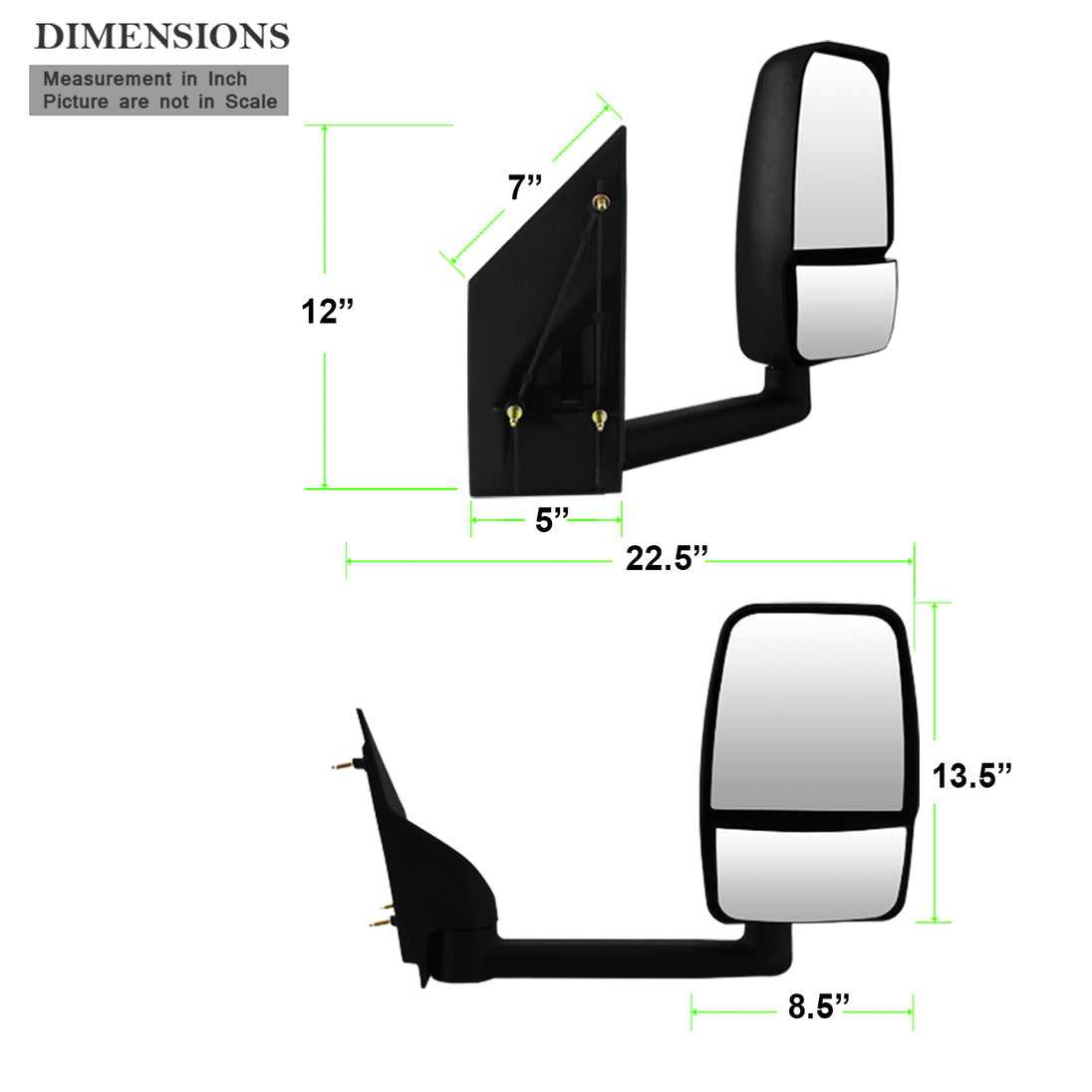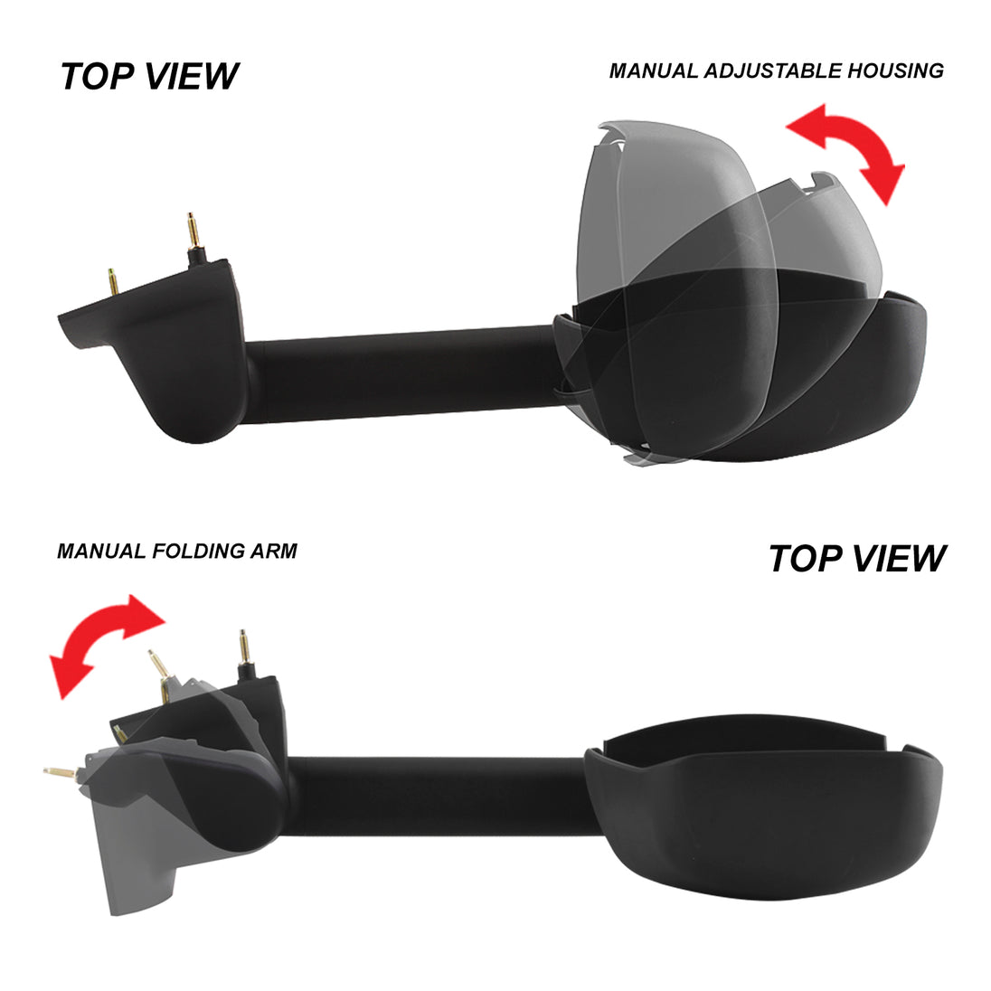 AKKON - For 2003-19 Chevy Express 1500/2500/3500 + GMC Savana 1500/2500/3500 Full-Size Van Manual Towing Towing Mirrors Pair Set