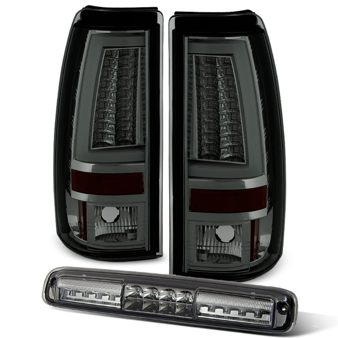 AKKON - For [LED Set] 03-06 Chevy Silverado GMC Sierra C-shape Light Tube Smoked Tail light + 3rd Brake Lamp