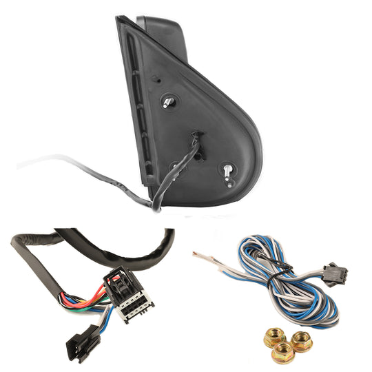Regular price $99.99This is a 100% brand new replacement Towing Mirror Assembly Features: Powered Adjustment Plane Glass Integrated Manual Adjusted Convex Mirror Power Heated Defrost Function Amber Color Sequential Turn Signal Lamp on Cover Clearance Lamp on Cover... -