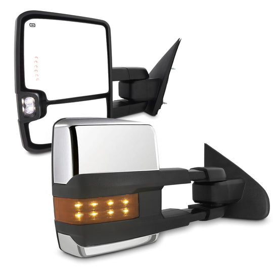 AKKON - For 2014-2018 Chevy Silverado GMC Serria - Pair Towing Mirrors With Power fold| Heated | Turn Signal | Lamp - Chrome