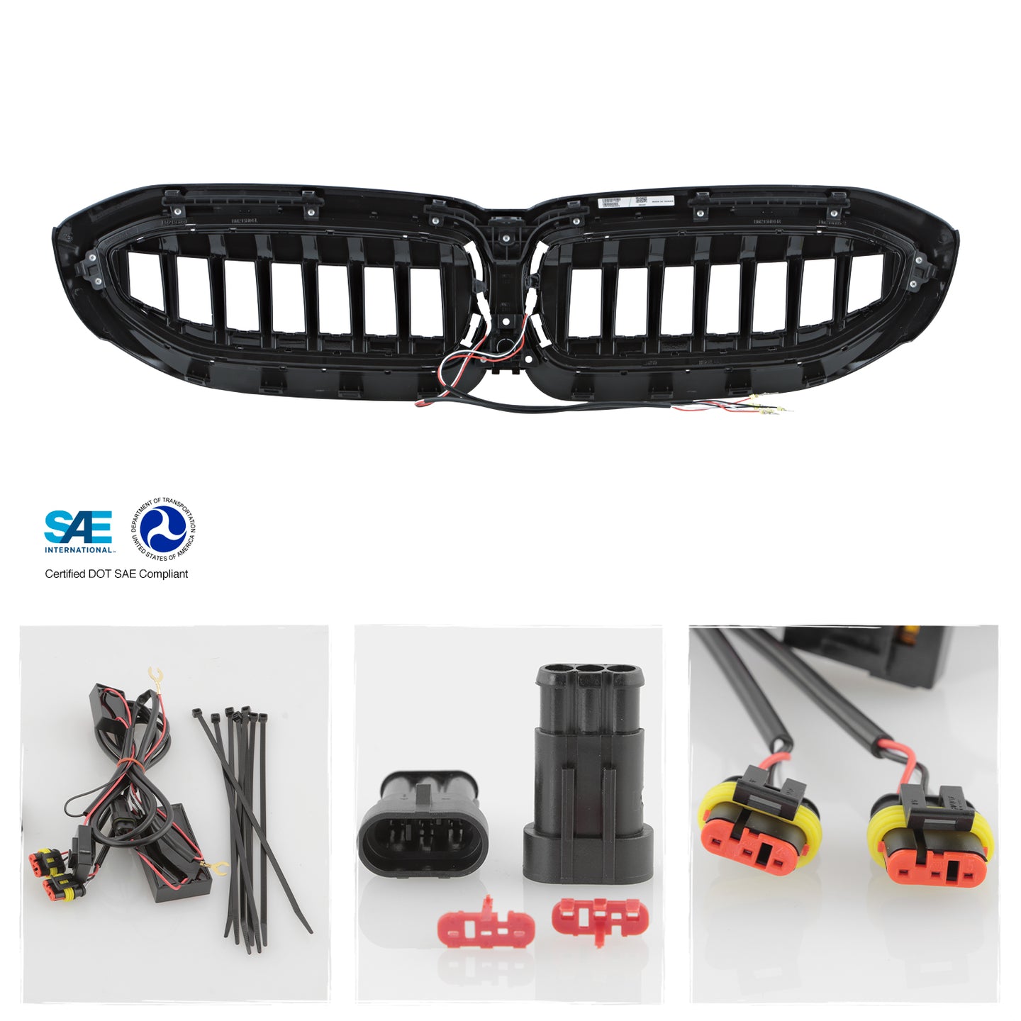 AKKON - Fits 2019-2022 BMW 3 Series G20 320i 330i Black Grille Front Bumper Grill +LED Tube Welcome Light w/Accessories