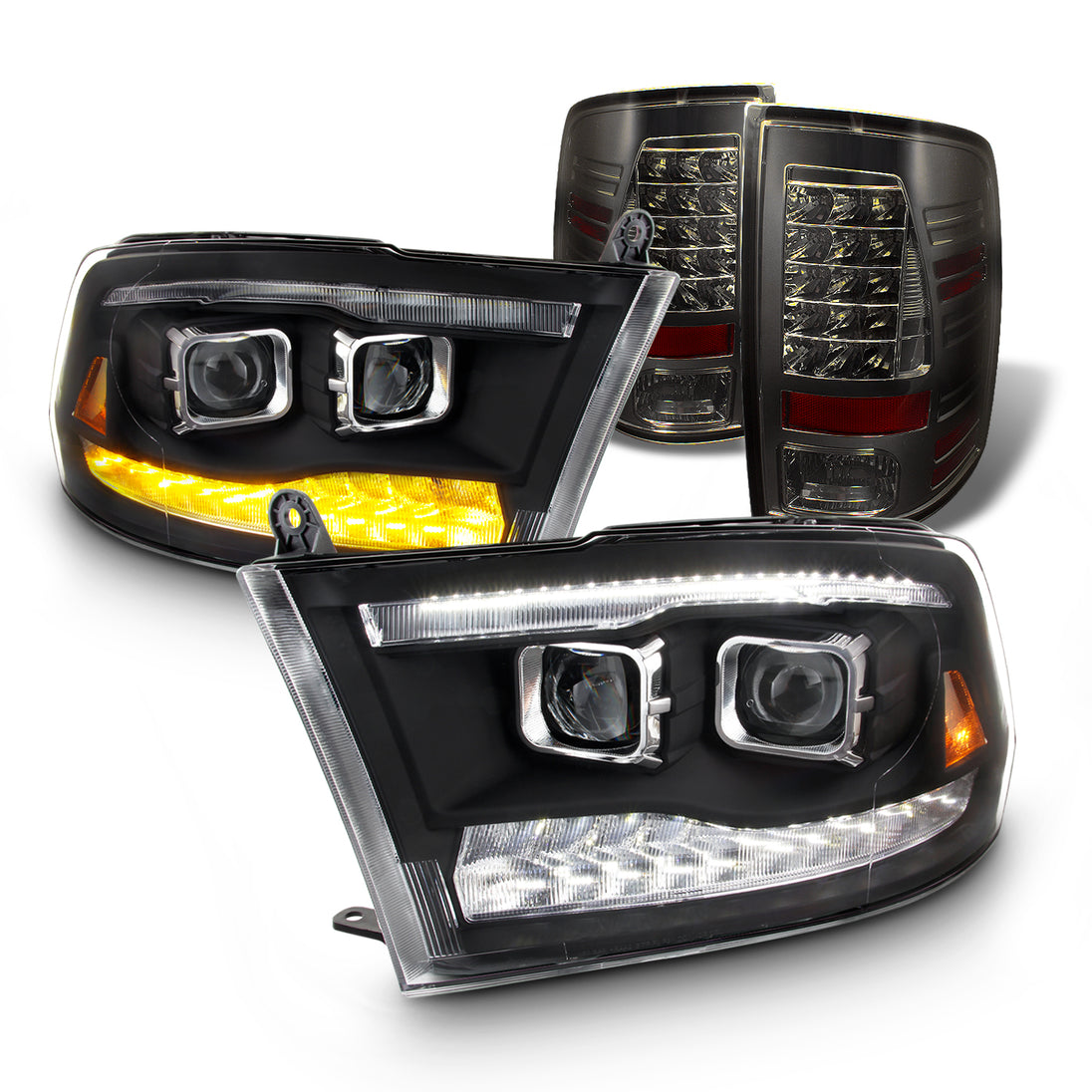 AKKON - For 09-18 Dodge Ram Dual Projector &Switchback DRL Headlights Assemblies + Tail Lights Smoke Housing