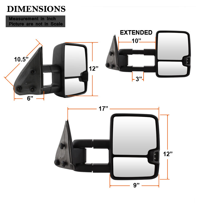 AKKON - For 03-06 Chevy Silverado Pickup Truck Extendable Towing Manual Mirrors Driver Left Side Replacement