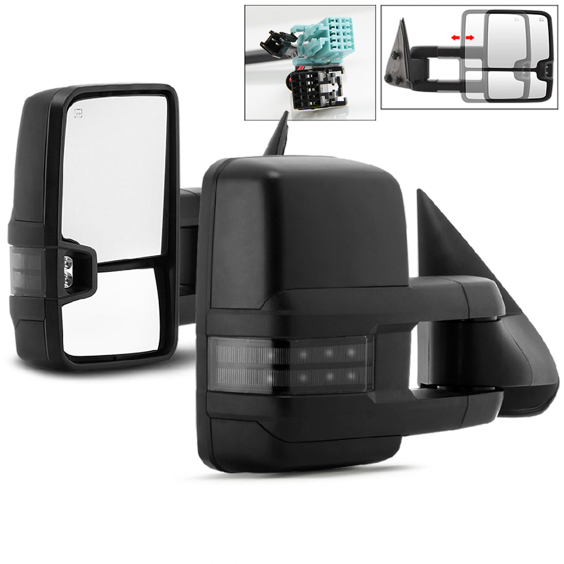AKKON - For 03-06 Chevy Silverado Suburban Tahoe GMC Sierra Yukon Pickup Truck Extending Power Heated Tow Mirrors w/Smoked Signal