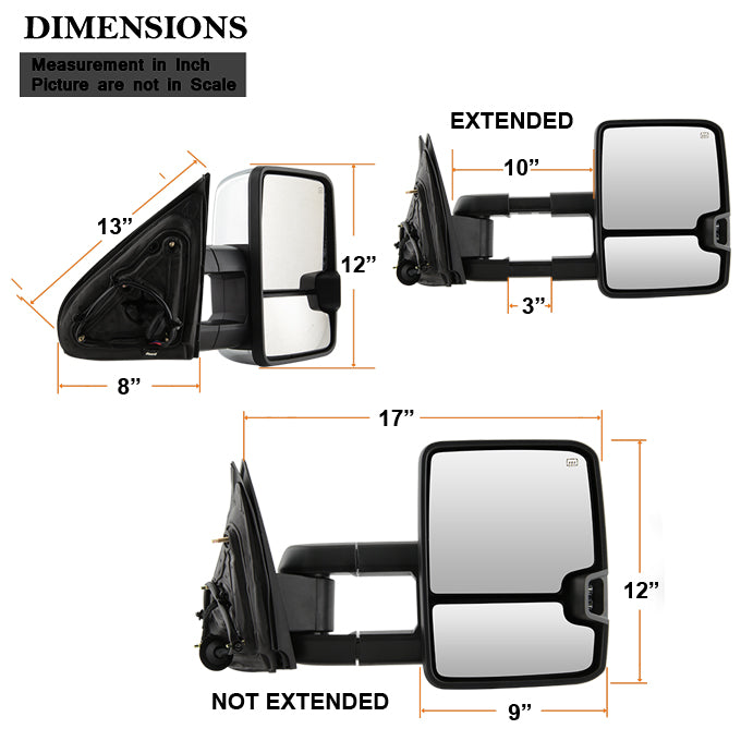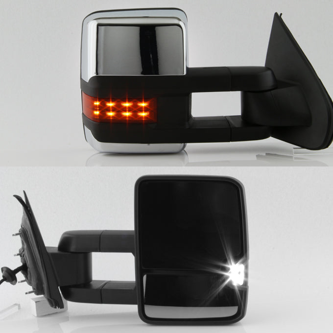 AKKON - For 14-20 Silverado Amber Extendable Towing Power Heated Function Side Mirrors Set Pair w/Chrome Cover