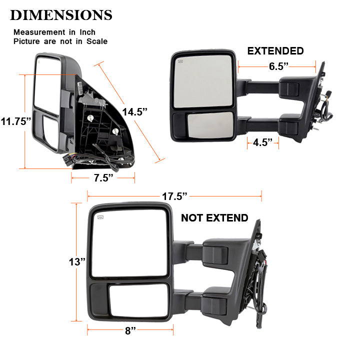 AKKON - For 08-16 Ford SuperDuty Extendable Towing Power Telescoping Wide Angle Side Mirrors Passenger Side