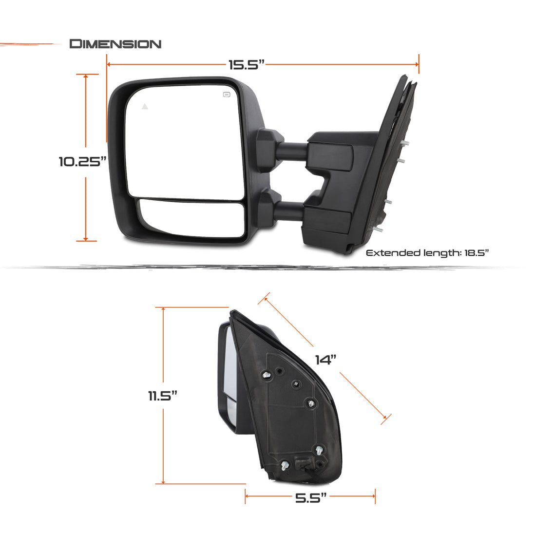 AKKON - Fit Titan 2017-2021 Power Towing Mirror w/Heated LED Turn Signal Puddle Light - Blind Spot Detection - Passenger + Driver Black