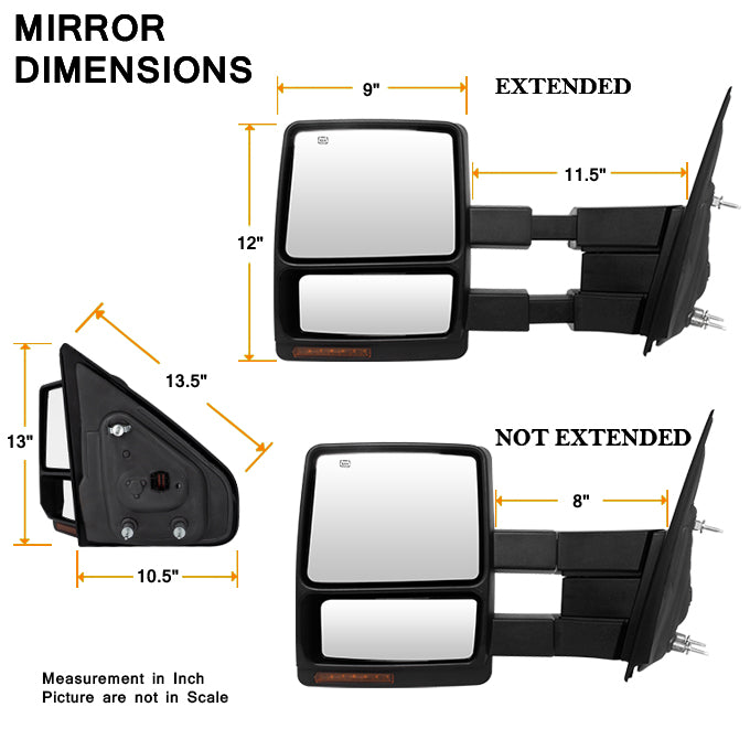 AKKON - For 04-06 F150 Extendable Towing Power Telescoping Wide Angle Side Mirrors Left + Right Pair