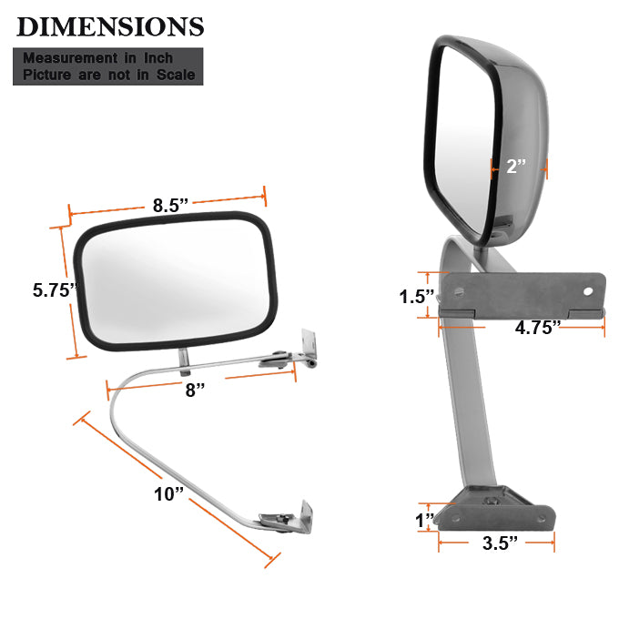 AKKON - For 80-96 Bronco 84-90 Bronco II 80-83 F-100 80-96 F-150 80-96 F-250 80-97 F-350 Silver Mirror Pair