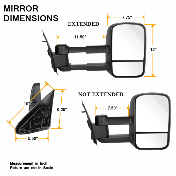 AKKON - For 99-07 Chevy Silverado Pickup Truck Extendable Towing Manual Mirrors Driver Left Side Replacement