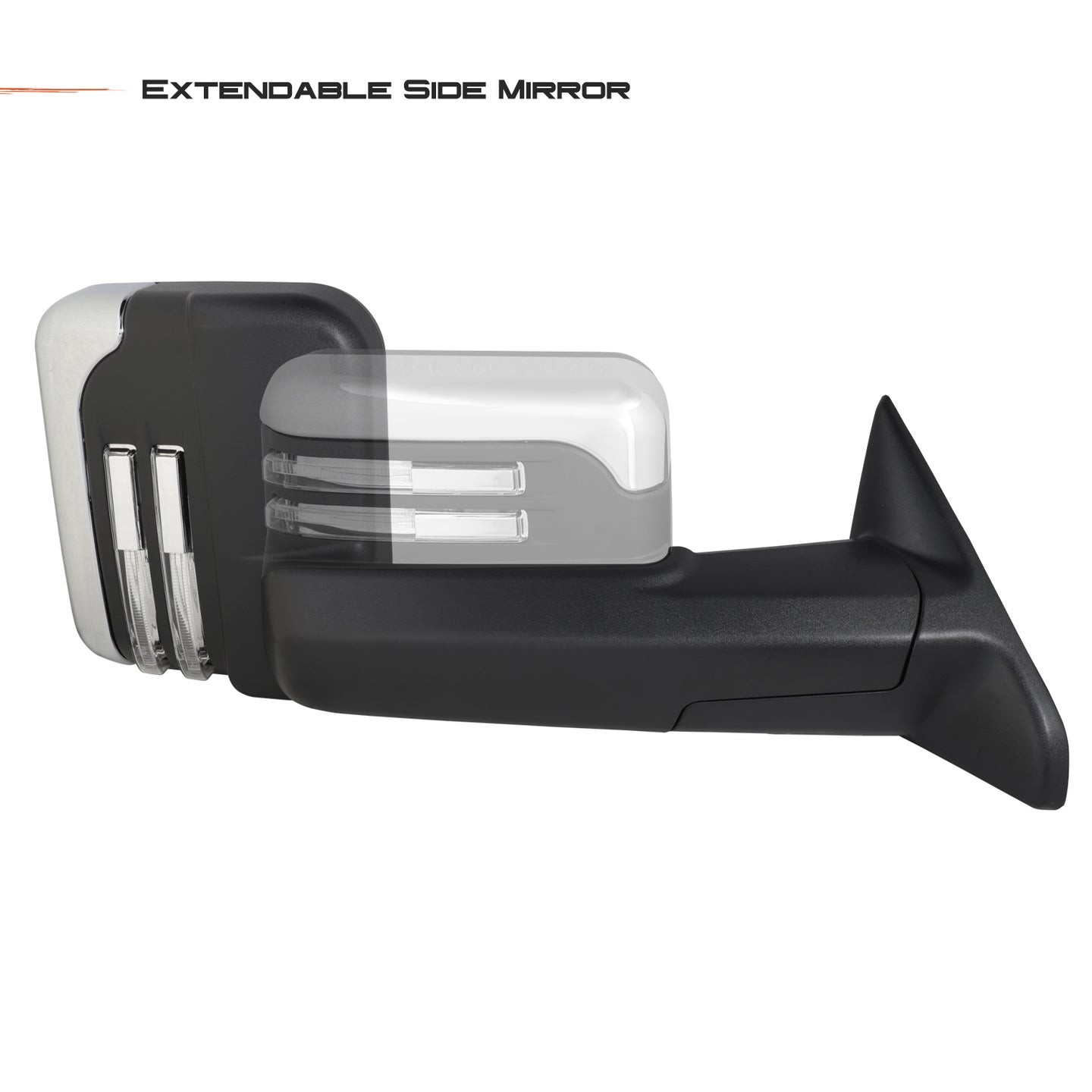AKKON - Fits 2009-2018 Dodge Ram 1500 2500 3500 Power Heated Manual Folding Extendable Chrome Mirrors w/ LED Turn Signal