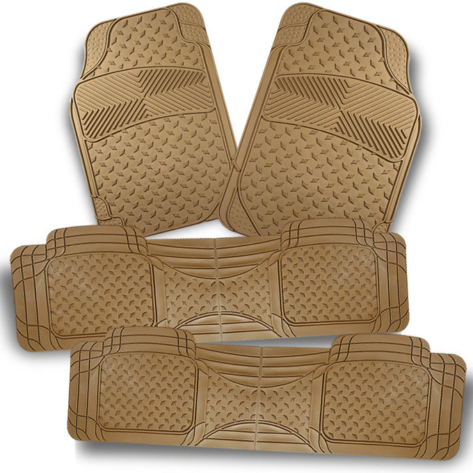 AKKON - For All Weather Heavy Duty Ver.2 Metal Style Beige Car Interior Front + Rear Floor Mats 4 Pieces Liner