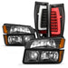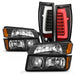 AKKON - Fits 2002-2006 Chevy Avalanche 1500 2500 [Body Cladding] Black Headlights w/Bumper Light + LED Tube Tail Brake Lamp Pair