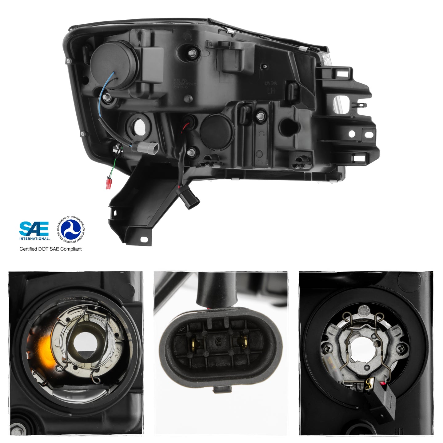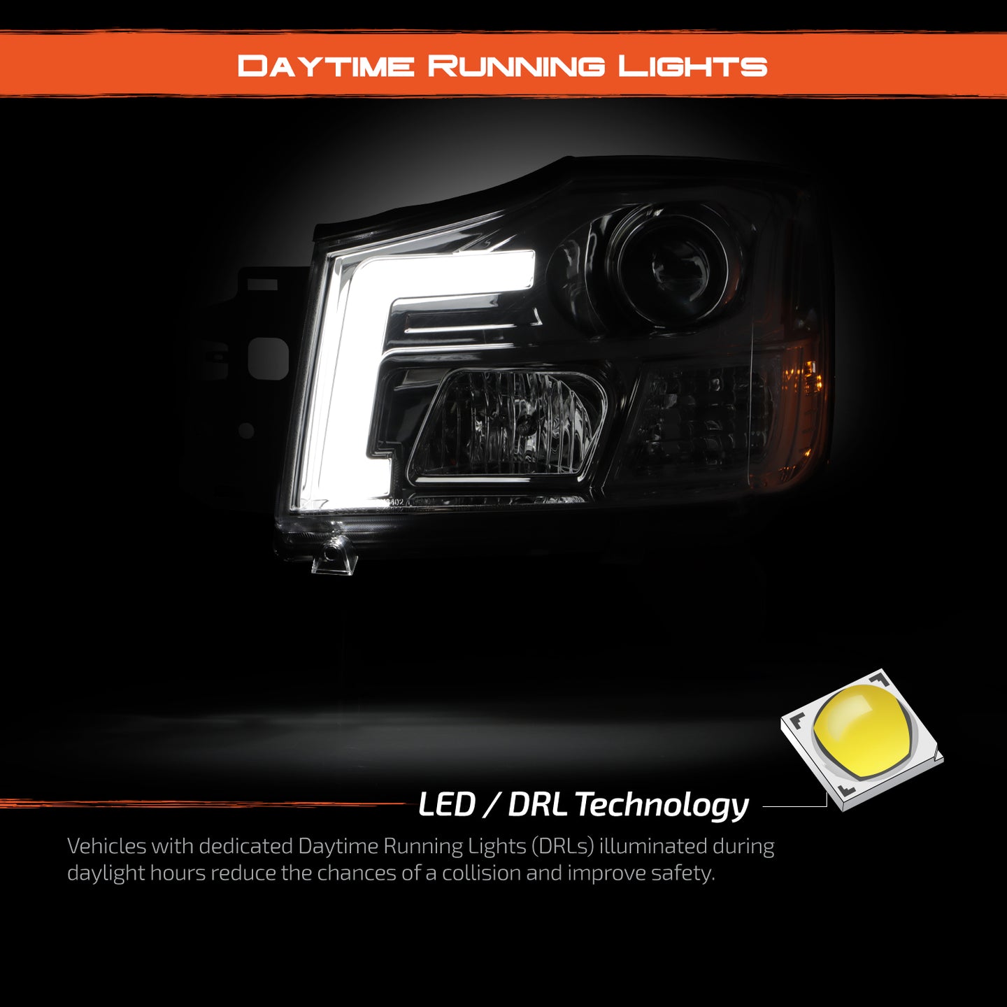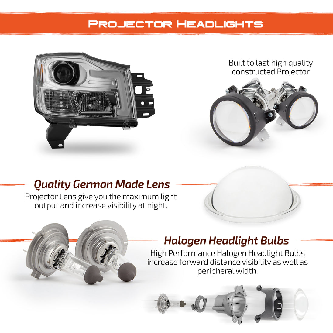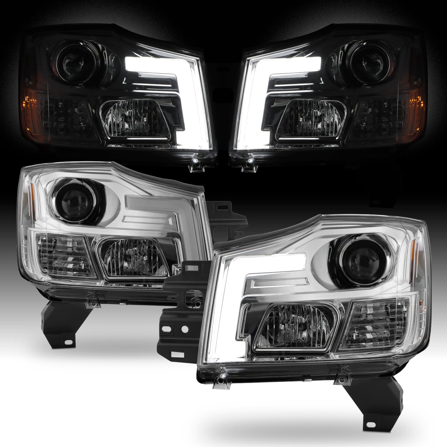 AKKON - [C-Tube Style] For 2004-2015 Titan / 04-07 Armada LED Projector Chrome Headlights Driver+Passenger Pair