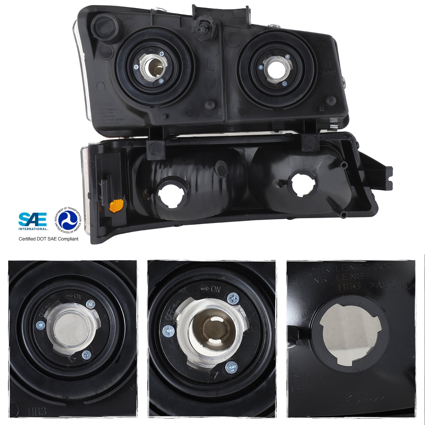 Fits 03-06 Silverado 03-06 Avlanche Blk Headlights +Bumper Signal+ LED Fog Light