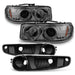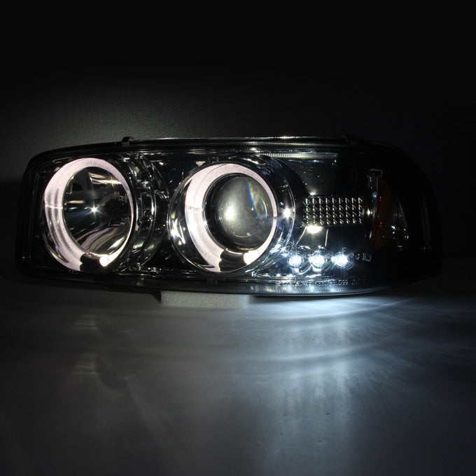 AKKON - For 2001-2006 GMC Sierra | Yukon XL | Denali Smoked Dual Halo LED Headlights + Black Bumper Signal Lamp
