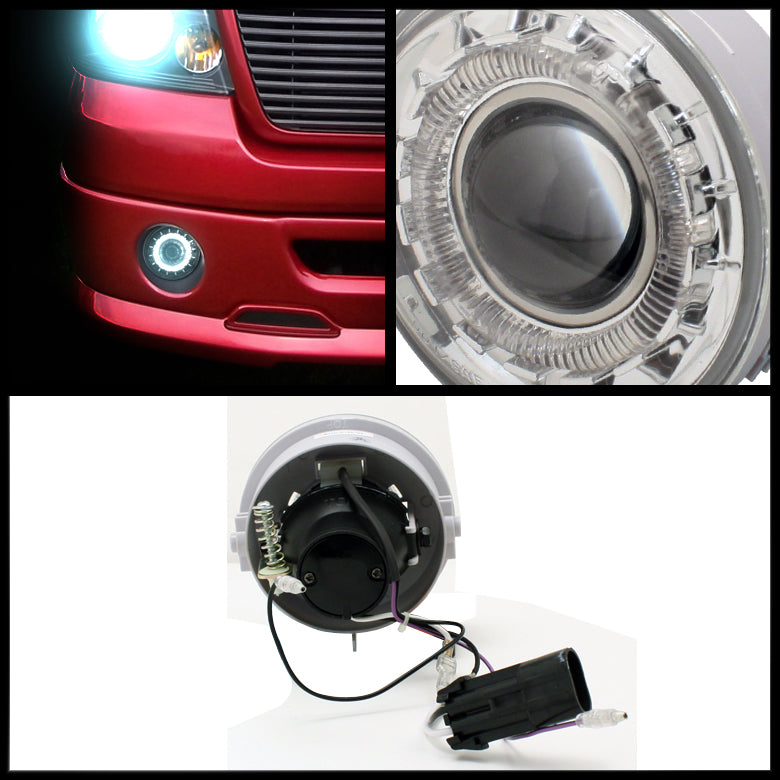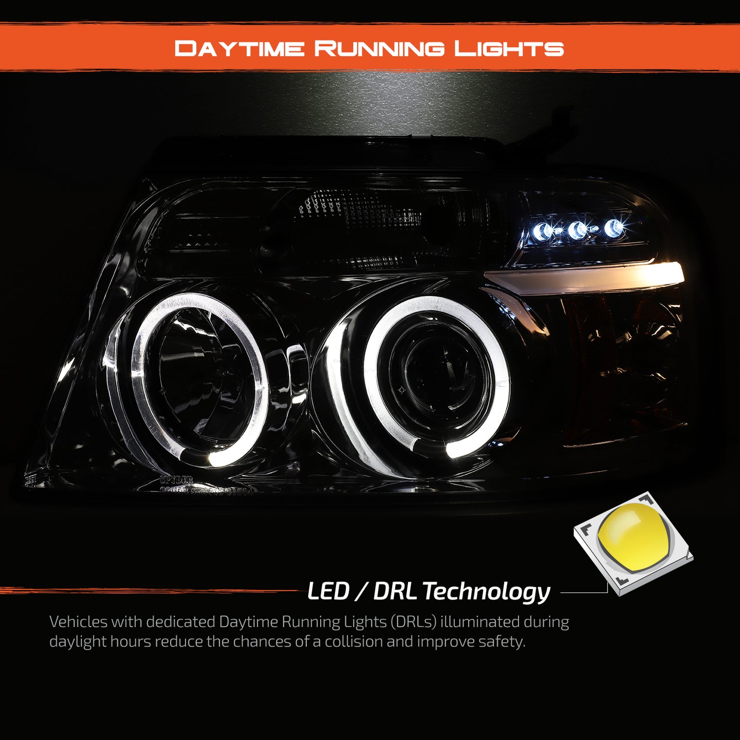 AKKON - For Ford F150 F-150 Pickup Smoked Smoke Dual Halo LED G2 Projector Headlights + Fog light Set