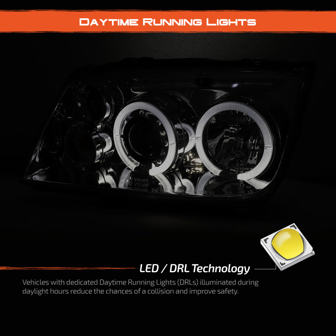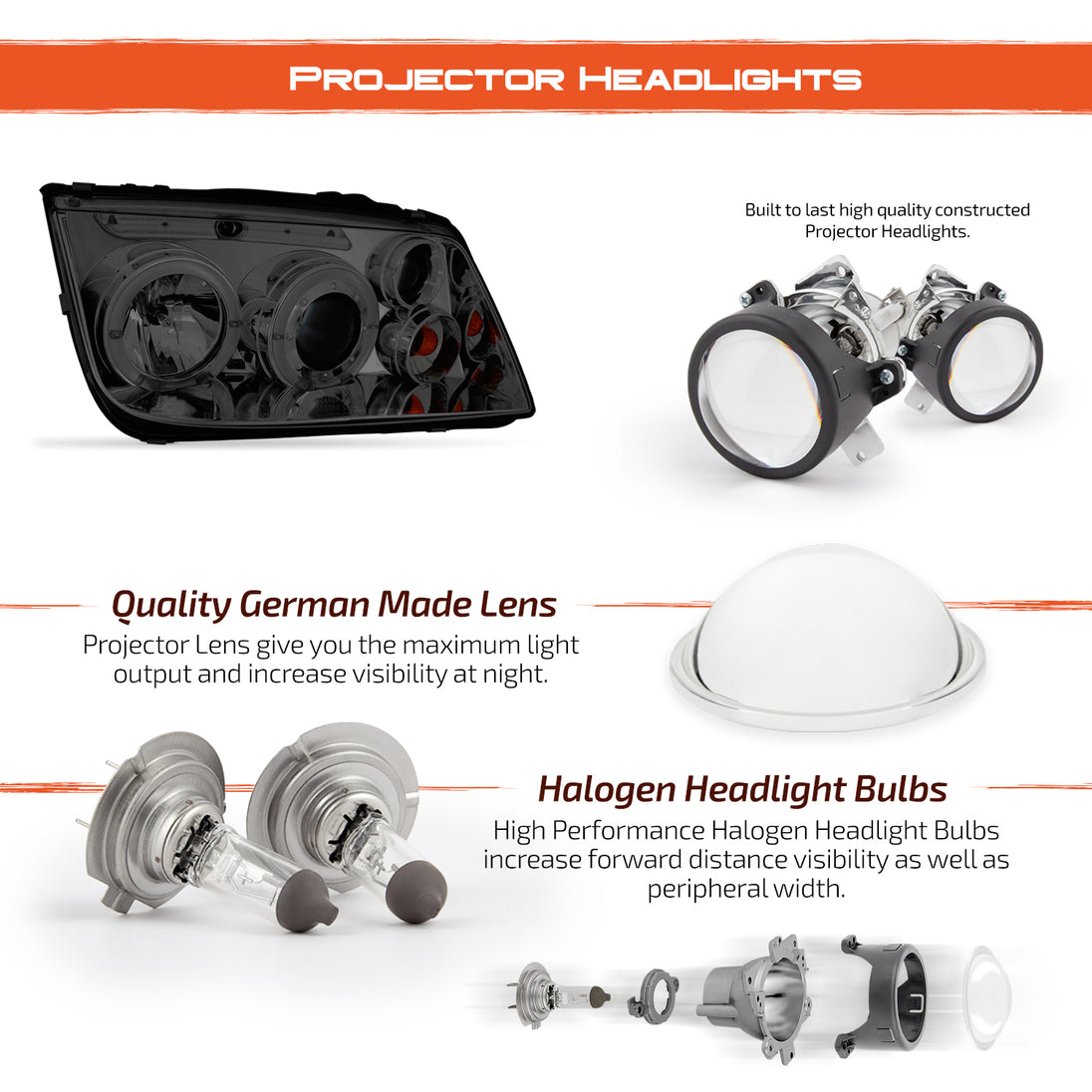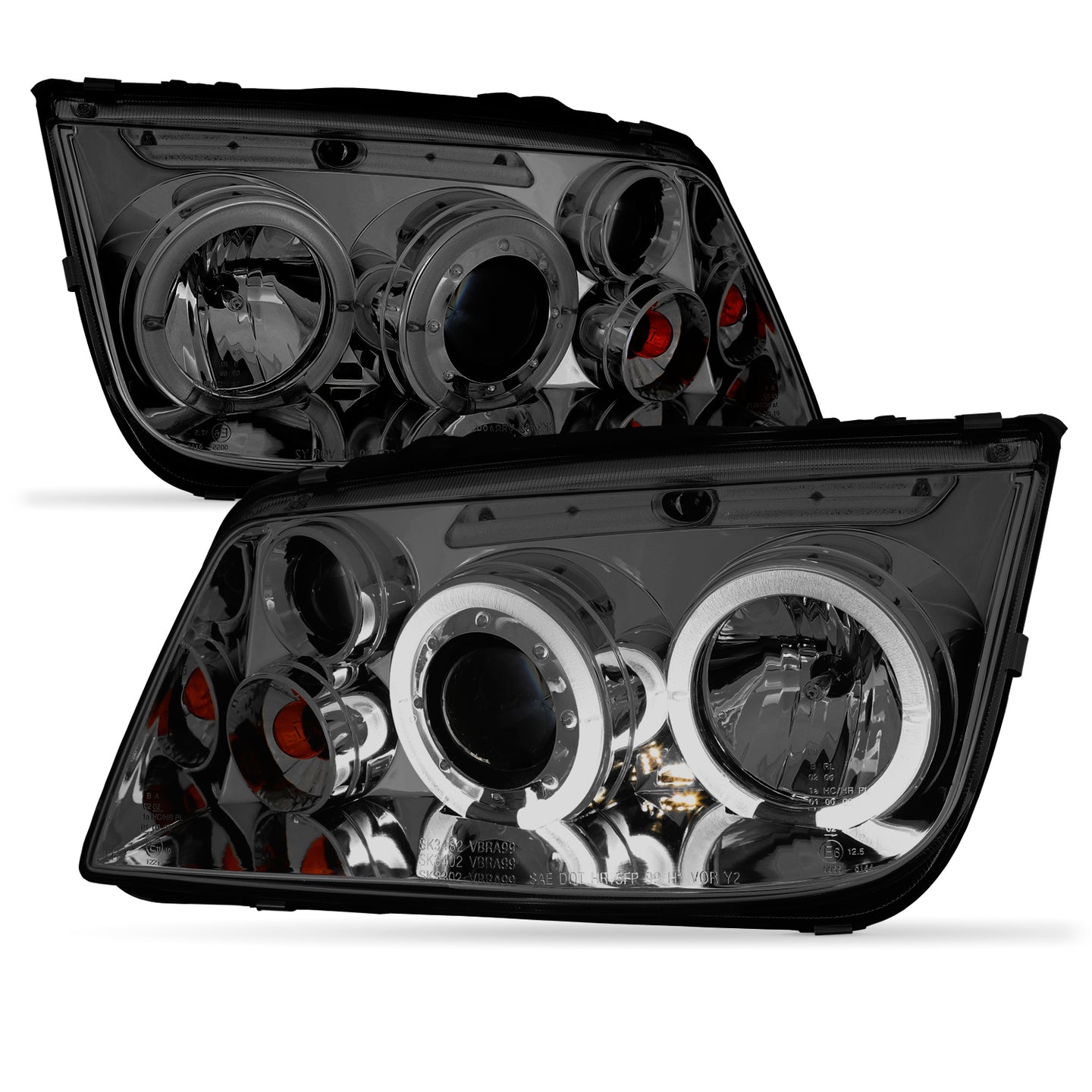 AKKON - For VW Jetta Bora A4 Smoked Smoke Halo Ring Projector Headlight Front Lamps Replacement Pair + 8K HID