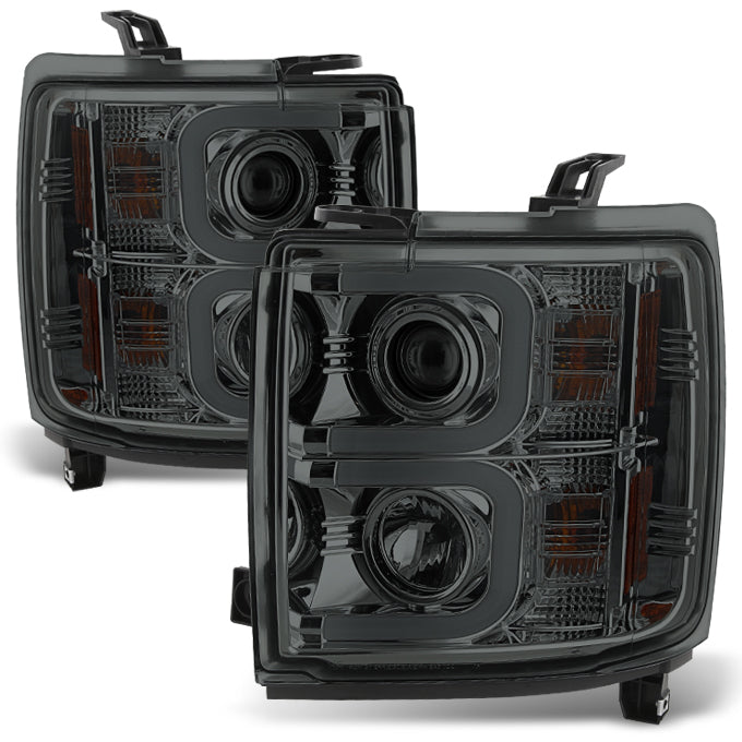 AKKON - For 15 16 17 18 19 Chevy Silverado Heavy Duty Smoked Smoke Dual LED DRL Projector Replacement Headlights Lamp