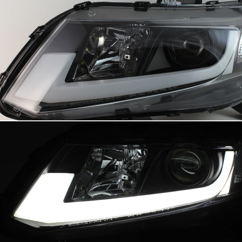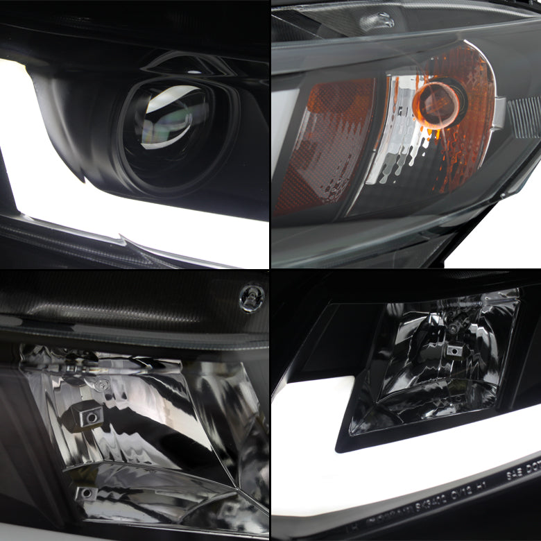 AKKON - For Honda 2012 Civic Sedan 4Dr Black Tube DRL LED Projector Headlights+ Yellow Fog Light Lamp