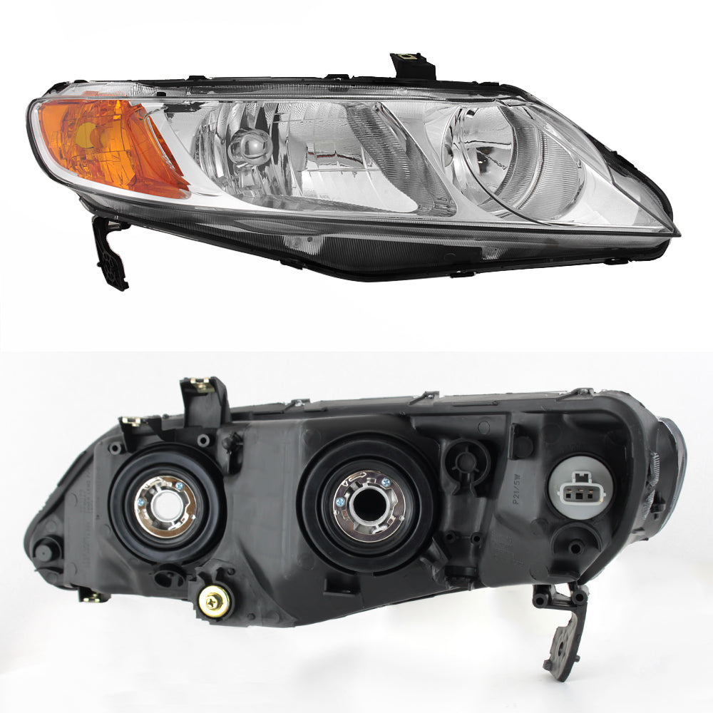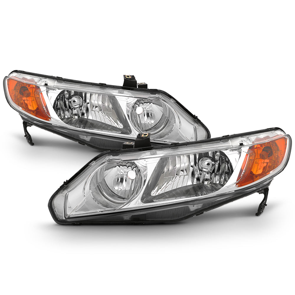 AKKON - For 2006-11 Honda Civic 4DRs Amber Corner Headlights Assembly Chrome Housing Clear Lens Full Set