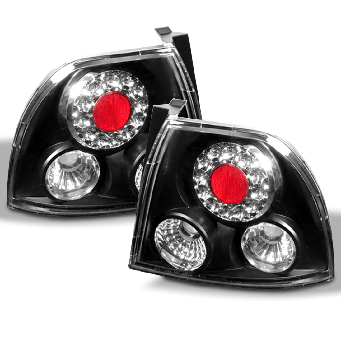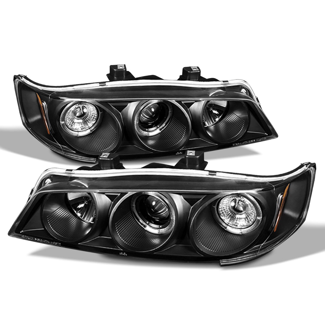 AKKON - For Honda Accord Black Bezel Dual Halo Projector Headlights Driver/Passenger + LED Tail Light Set
