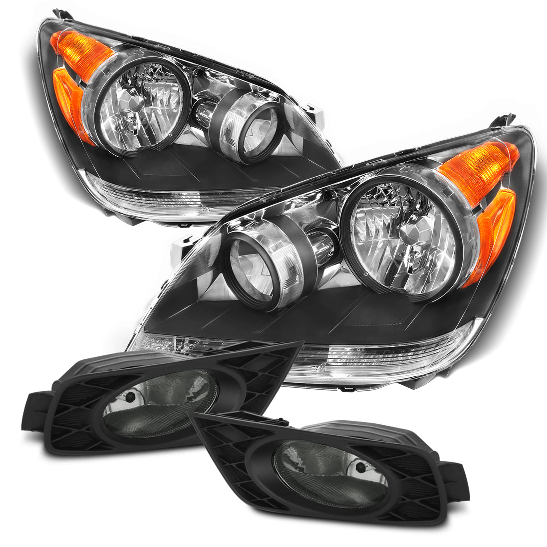 AKKON - Fits 2008 2009 2010 Honda Odyssey Van Front Black Housing Headlights Assembly + Smoked Fog Lamp