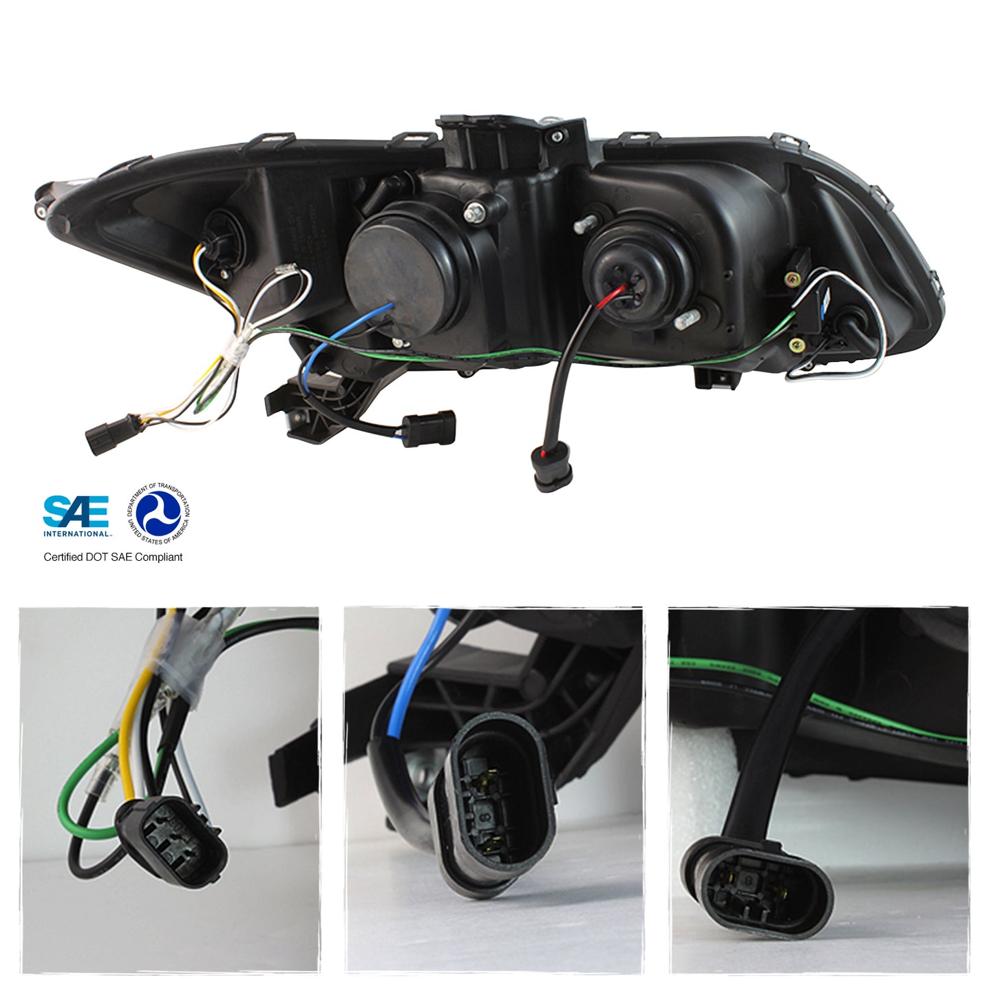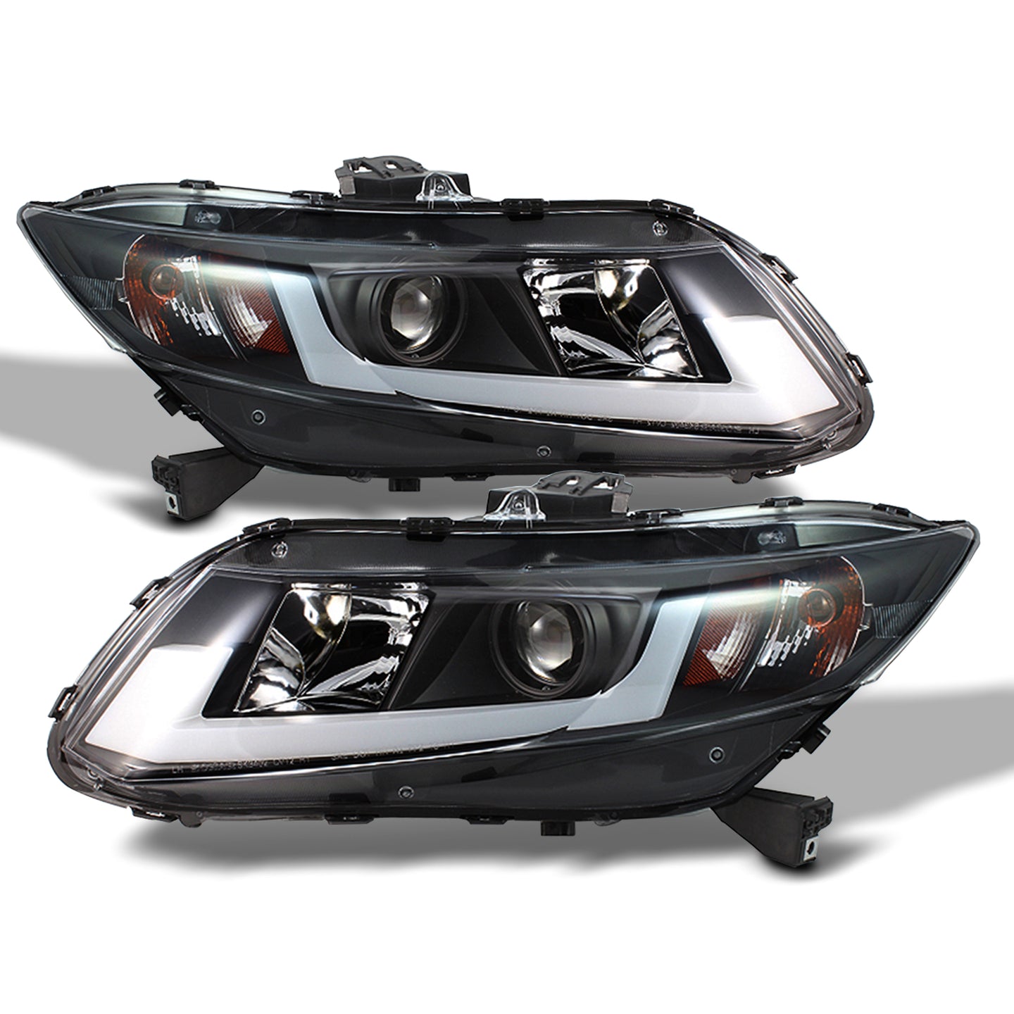 AKKON - For Honda Civic 4 Doors Sedan Black Bezel DRL Light Tube Projector Headlights+Fog Light W/ Switch