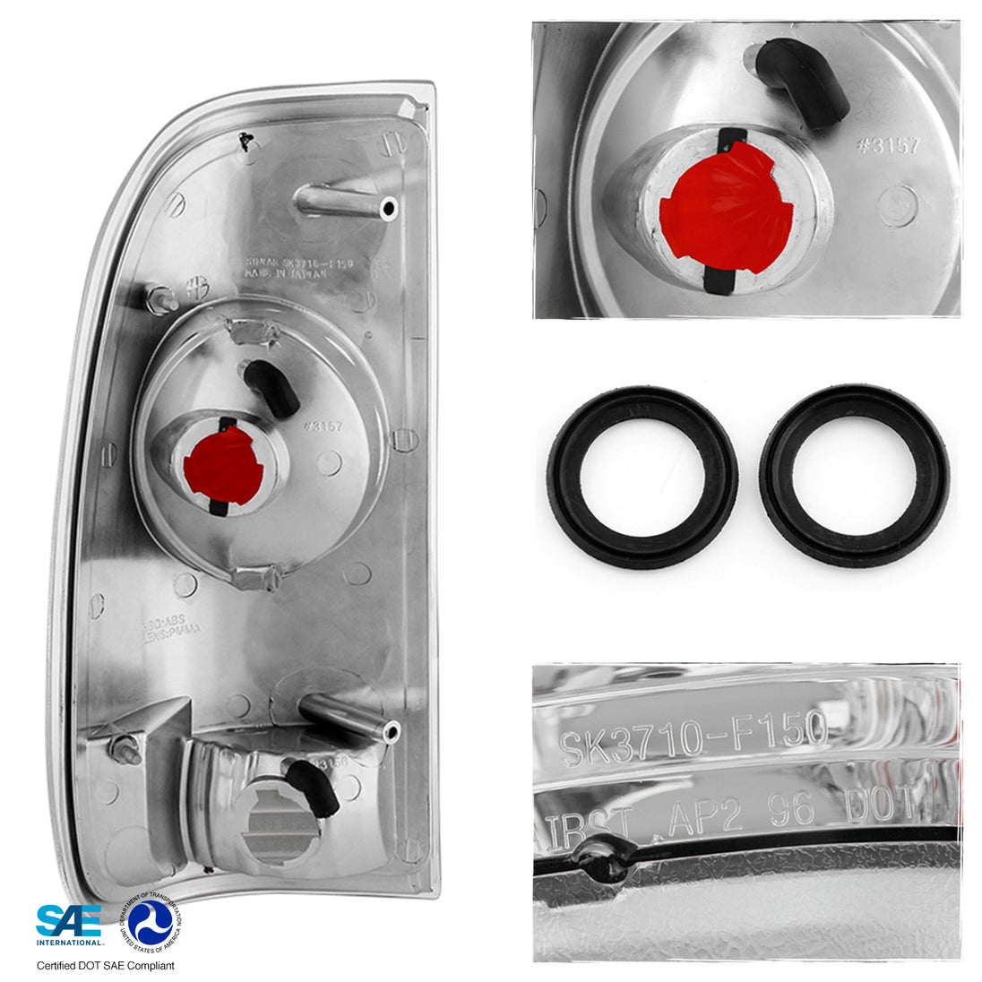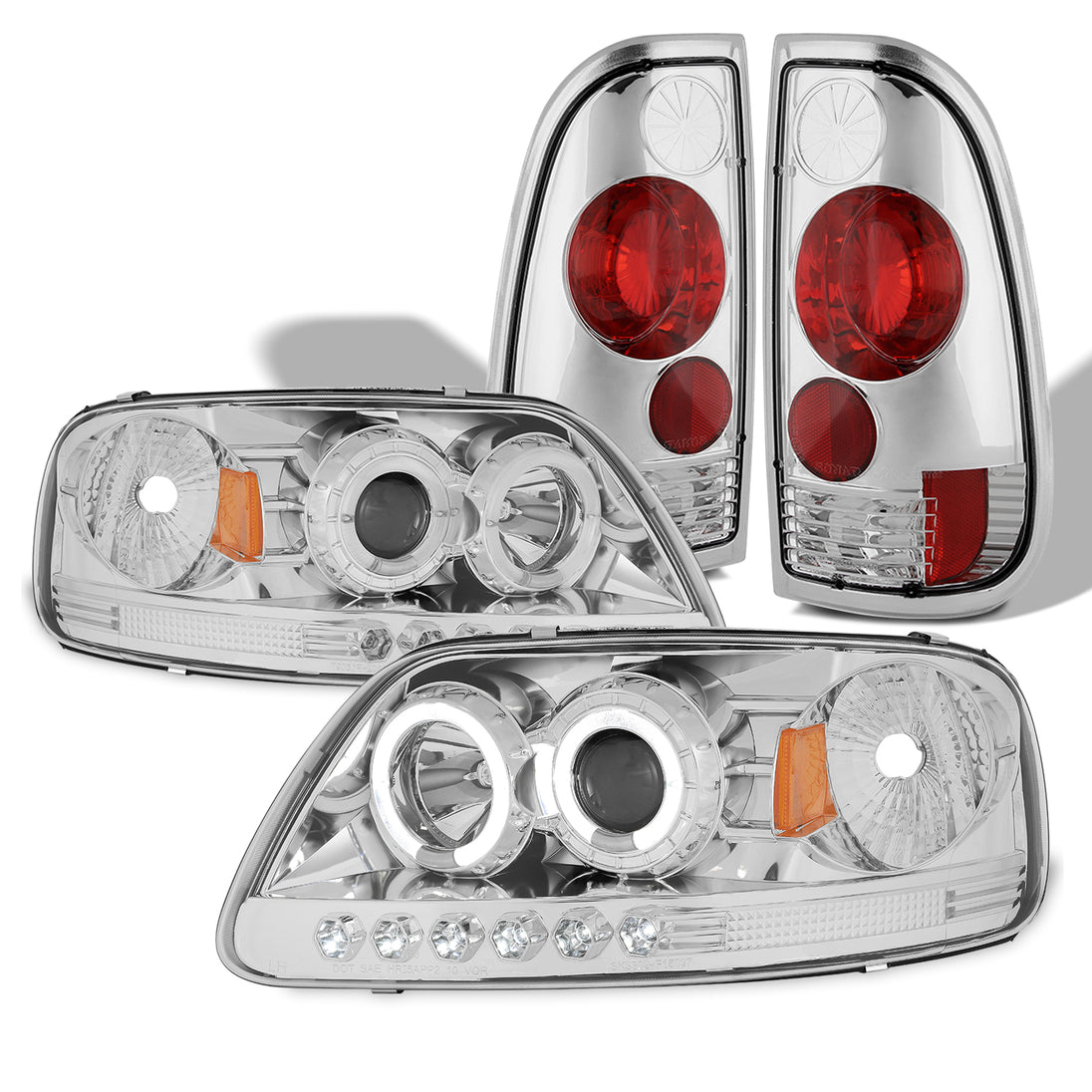 AKKON - For 97-03 F150/97-99 F250 Dual LED Halo Ring Chrome Clear Projector Headlights + Corner + Tail light Set