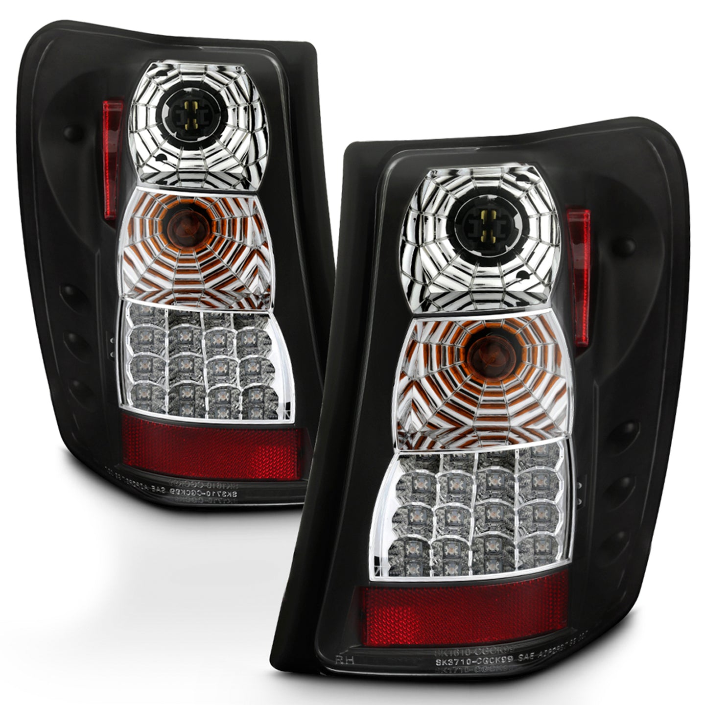 AKKON - For Jeep Grand Cherokee Black Bezel CCFL Halo Ring Projector LED Replacement Headlights + G2 Tail light