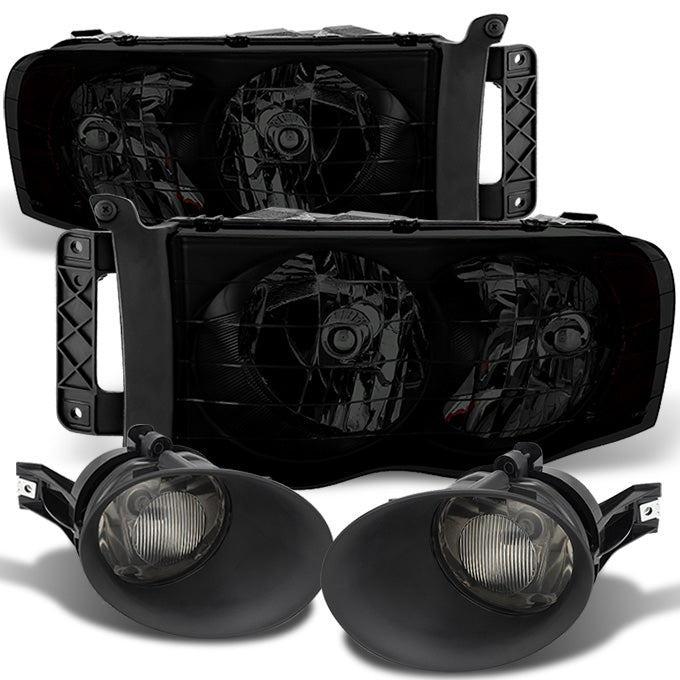 AKKON - For 2002-2005 Dodge Ram 1500 2500 3500 Pickup Truck Black Smoked Headlights + Smoked Fog Lights Lamps