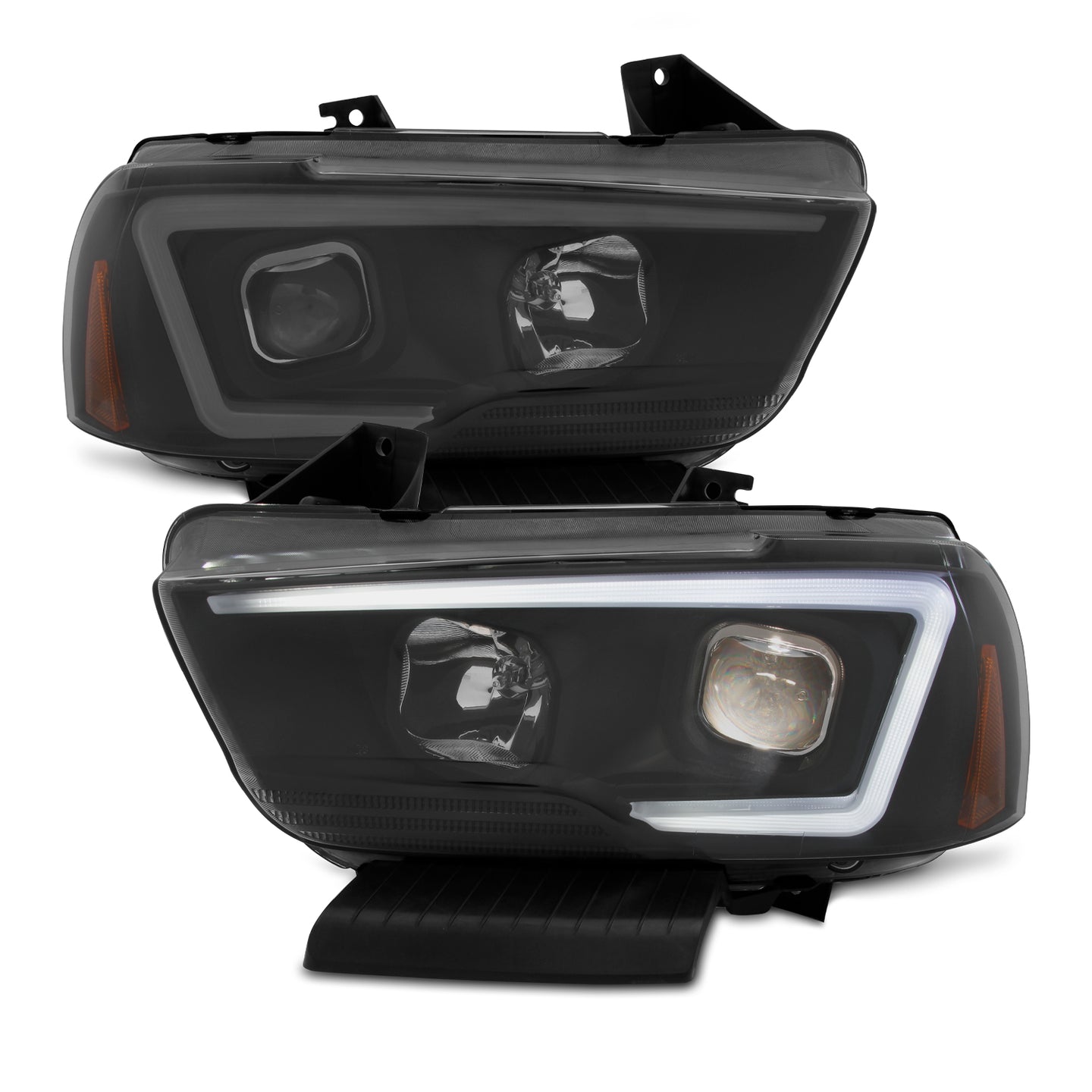 AKKON - For 2011-14 Dodge Charger Switchback LED Daytime Running Lamp Strip Projector Headlights Black Housing Smoked Lens Sets