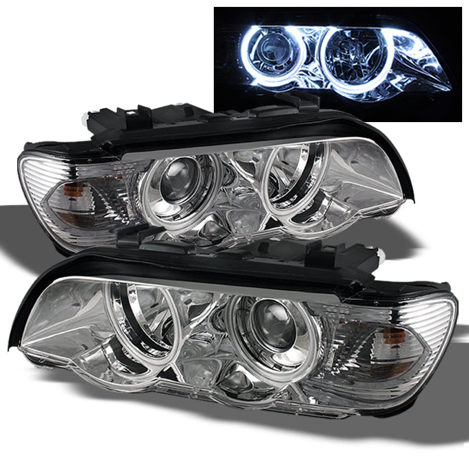AKKON - For 2001 2002 2003 BMW E53 X5 CCFL Halo Projector Chrome Headlights Pair Driver + Passenger Replacement