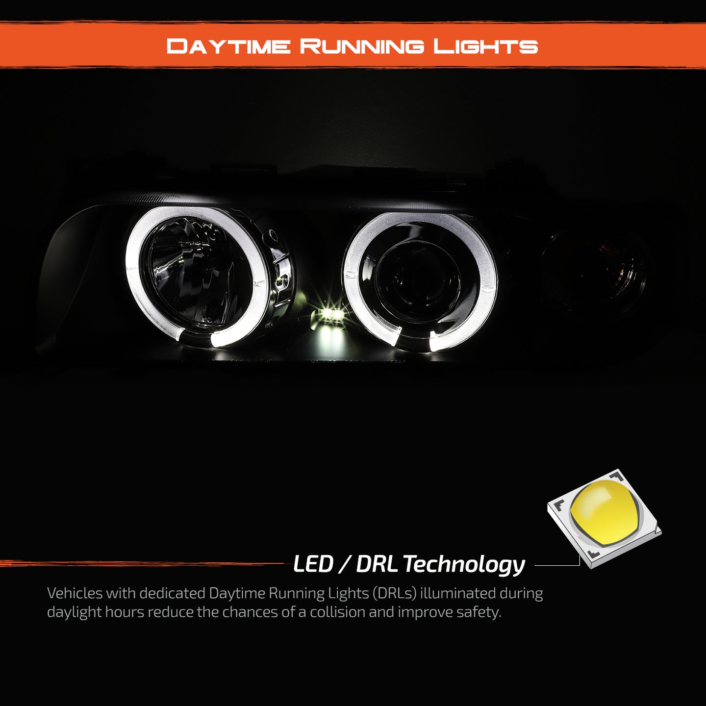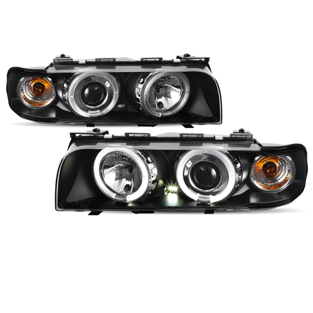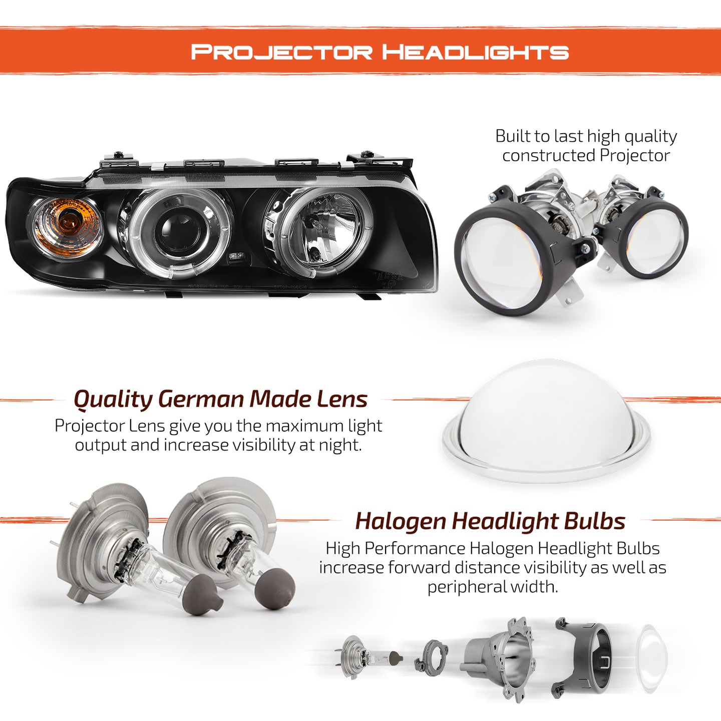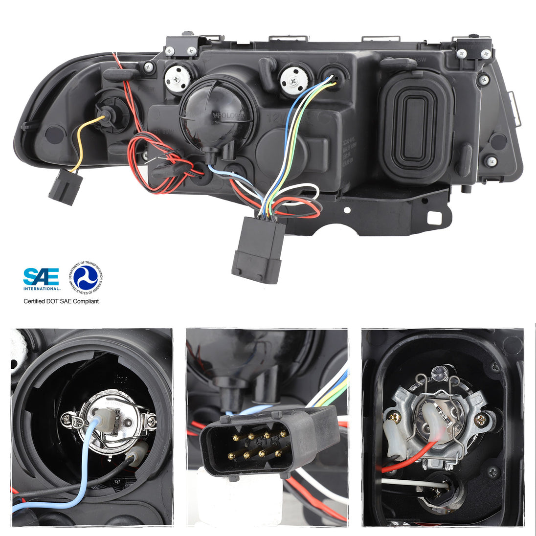 AKKON - For BMW E38 7 Series Black Bezel Halogen NON HID Type Projector Headlights Front Lamps Replacement Set