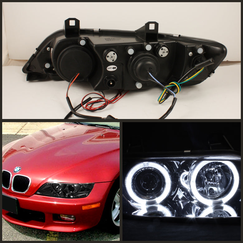 AKKON - For BMW E37 Z3 Coupe Halogen Type Smoked Smoke Dual Halo Ring Projector Headlights Lamps Replacement Set