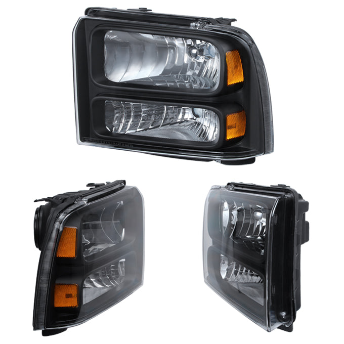AKKON - For Black 05-07 Ford F-Series Superduty 05 Excursion Headlight Front Lamps Direct Replacement Pair