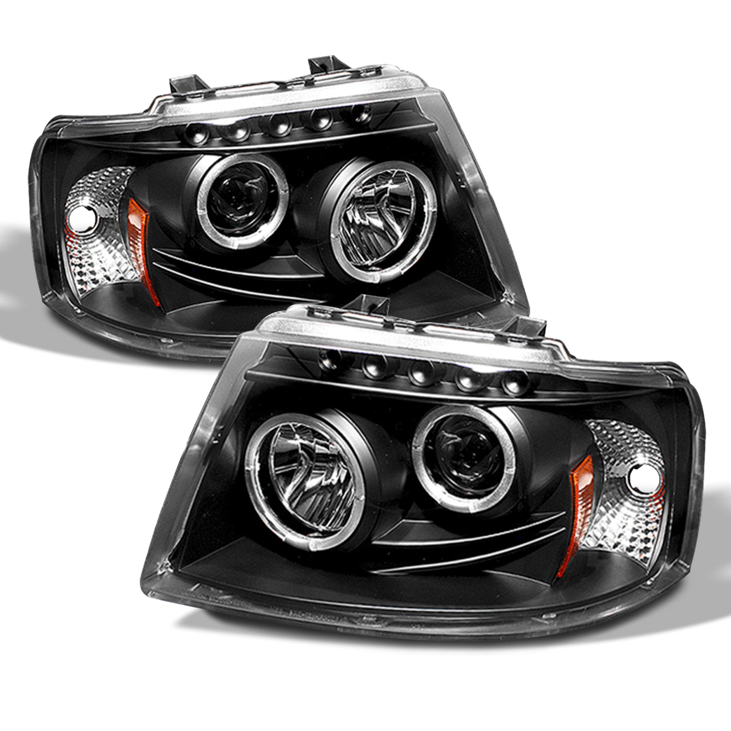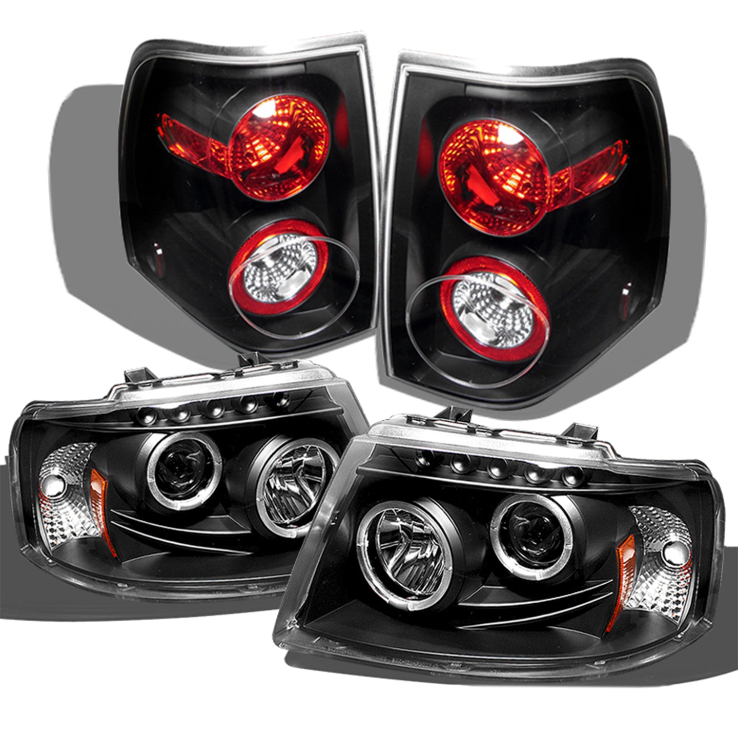AKKON - For 2003-2006 Ford Expedition Black Bezel Dual Halo Ring LED Design Projector Headlights + Tail light Set