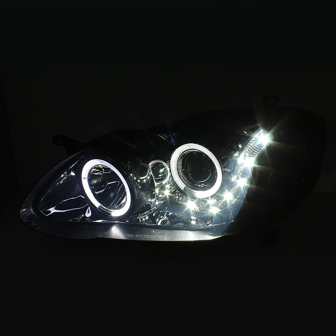 AKKON - For Toyota Corolla Smoked Smoke Dual Halo Ring DRL Daylight LED Projector Headlights Replacement Pair