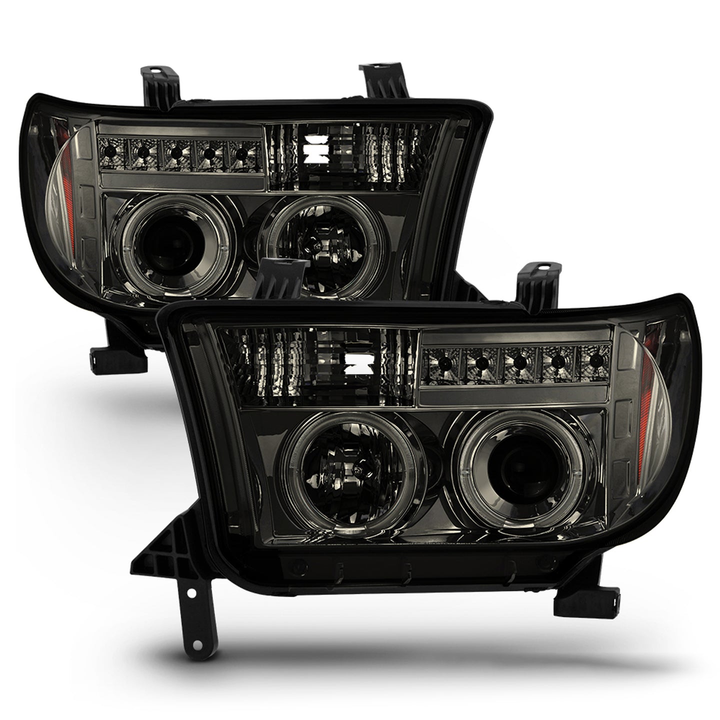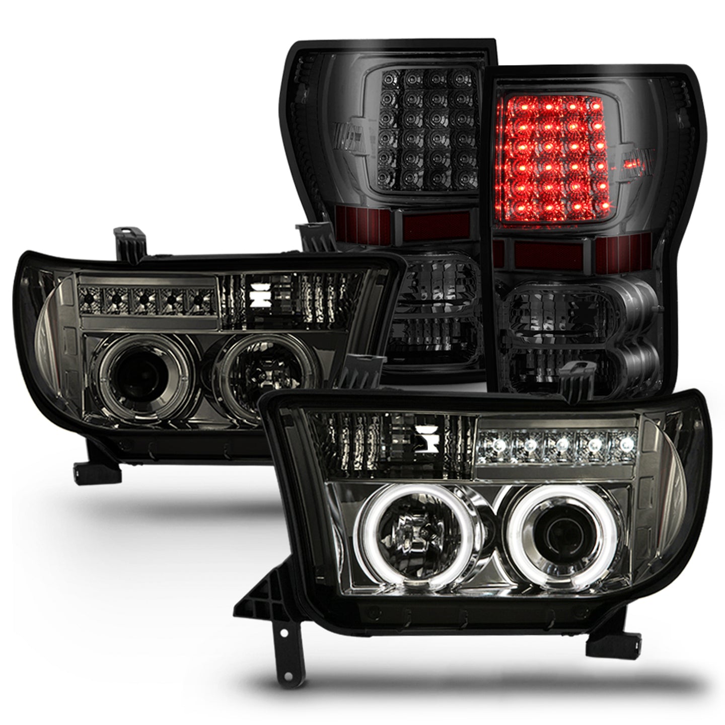AKKON - For Toyota Tundra Smoke Dual Halo Ring Projector LED Replacement Headlights + Smoke LED Tail Lamps
