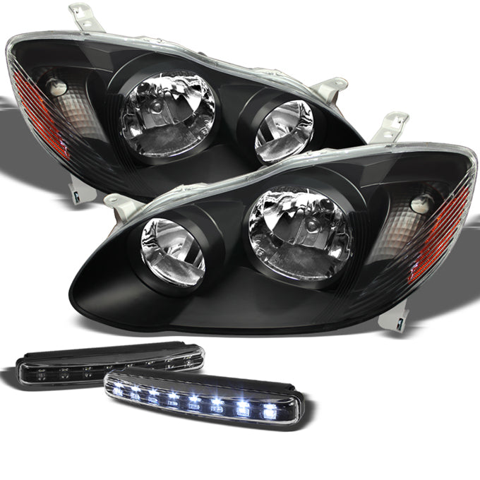 Fits 03-08 Toyota Corolla Crystal Amber Black Headlights +DRL LED Running Lights