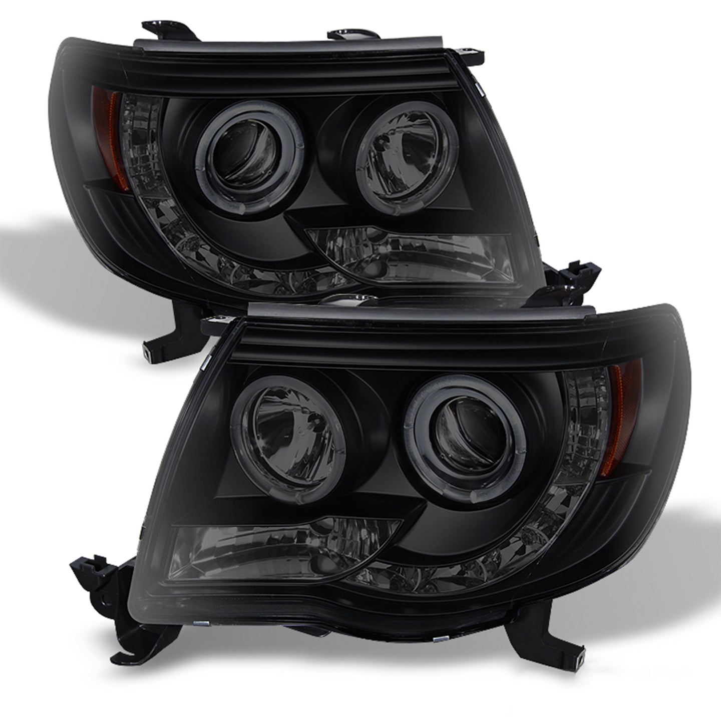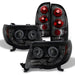 AKKON - For 05-11 Toyota Tacoma Pickup Black Smoke Dual Halo Ring Design Projector LED Replacement Headlights Lamps + Tail Light